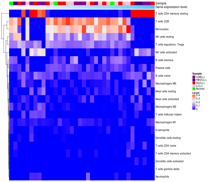Liver hepatocellular carcinoma HCV (HBV+)(86), Liver hepatocellular carcinoma HCV (HBV-)(19), Liver hepatocellular carcinoma (HBV+)(209), Liver hepatocellular carcinoma (HBV+)(60), Paracancerous HCV (HBV+)(4), Paracancerous (HBV-)(28), Paracancerous (HBV+)(18) |