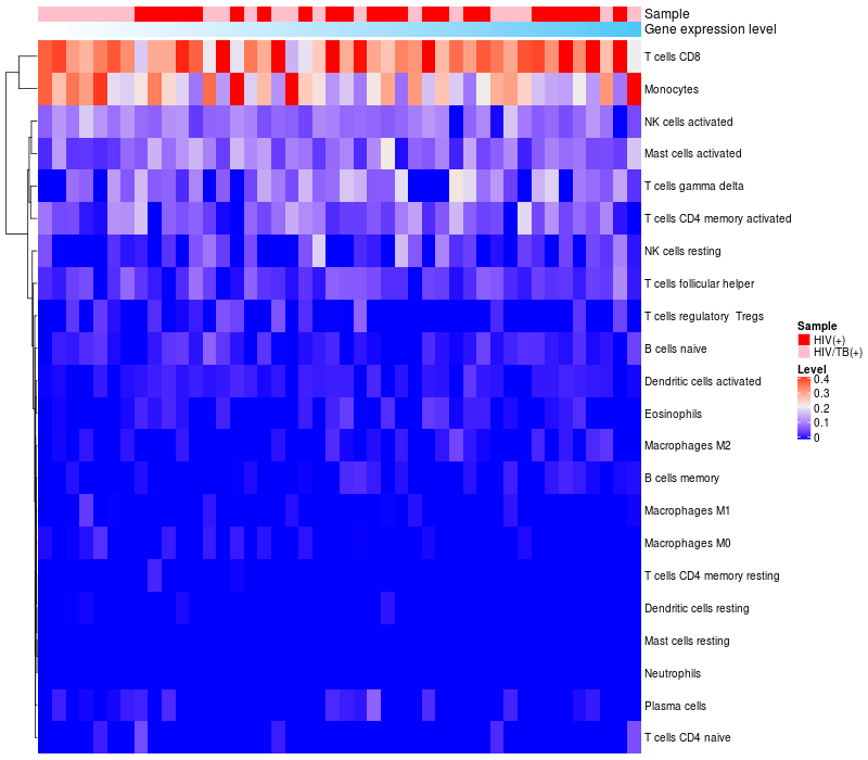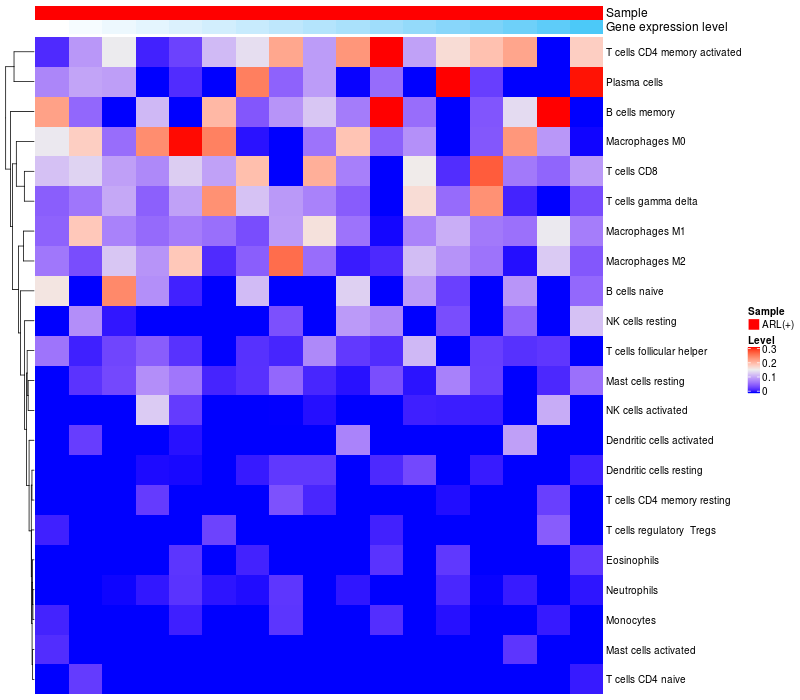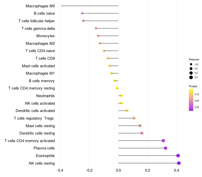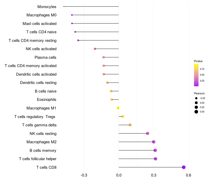 Relationship between gene expression and immune infiltrating cell level