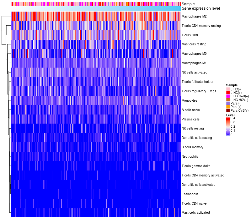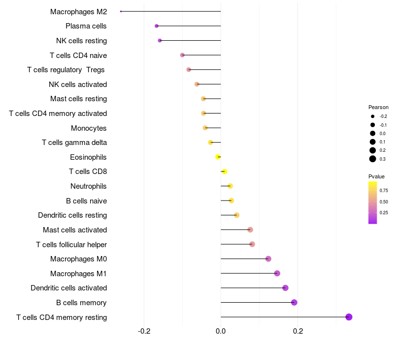 Relationship between gene expression and immune infiltrating cell level