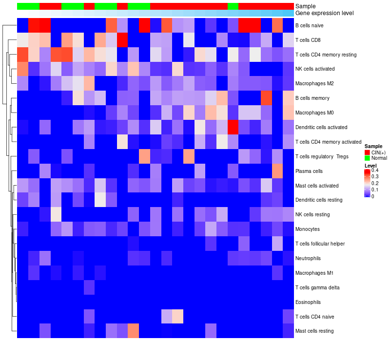 Normal (10), Cervical intraepithelial neoplasia (HPV+)(15) |