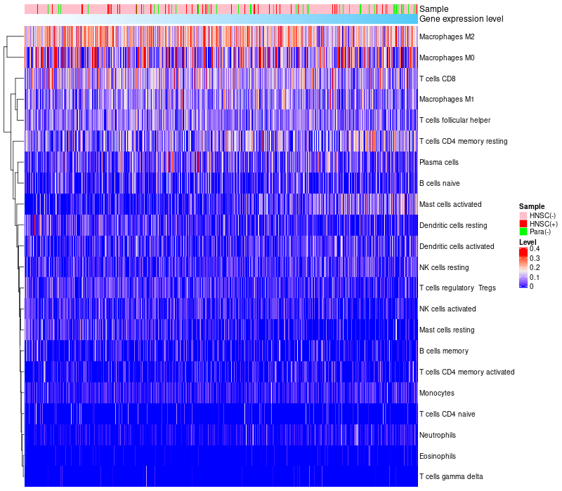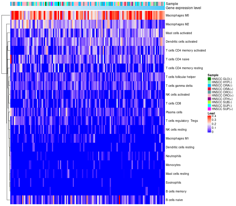 Head and Neck squamous cell carcinoma(HPV-)(483),Head and Neck squamous cell carcinoma(HPV+)(39),Paracancerous(HPV-)(44) |