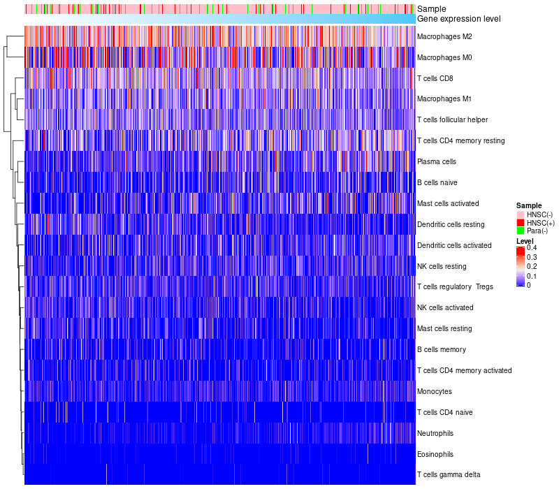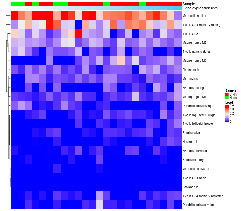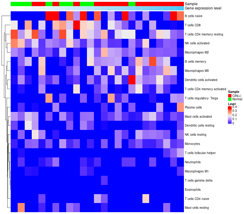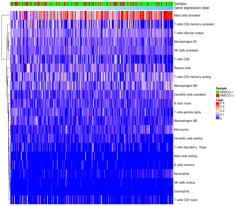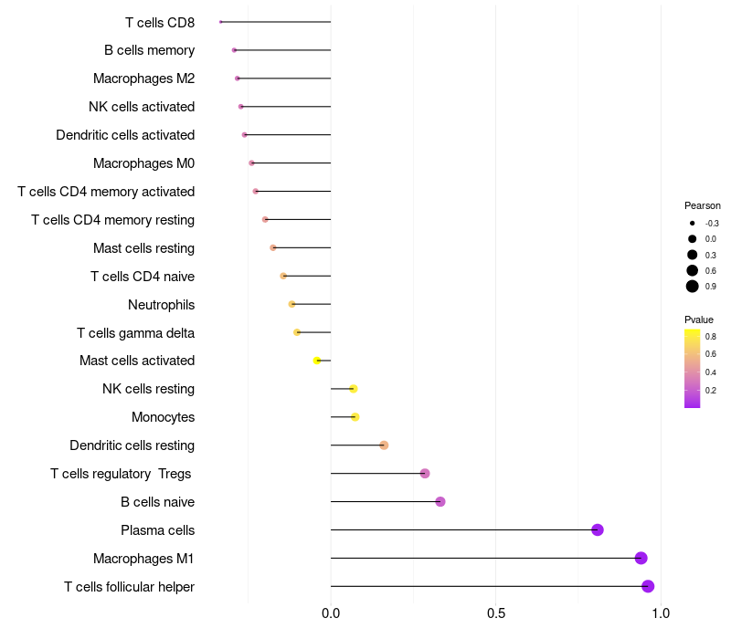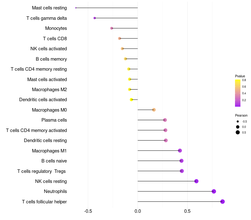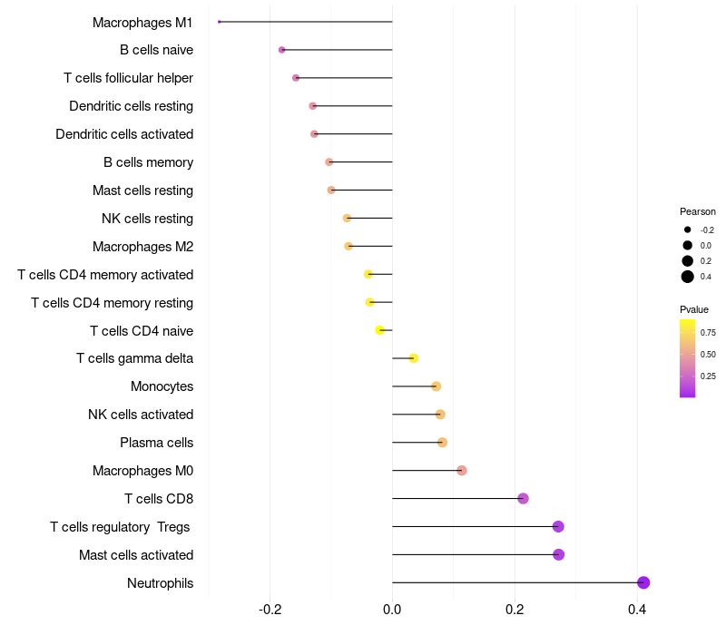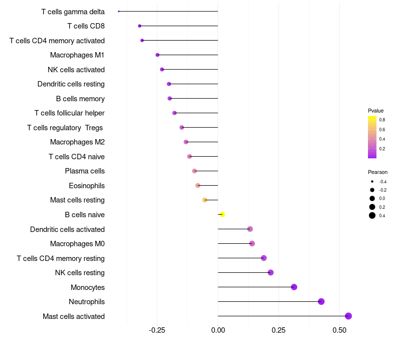 Lollipop of CXCL6 expression and immune infiltrating cell level correlation result in HPV+ samples