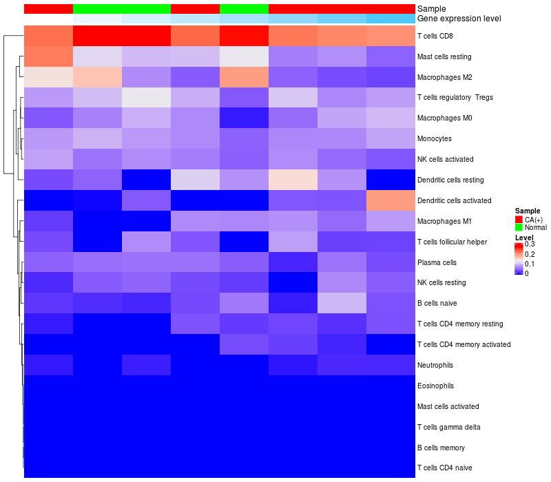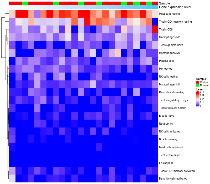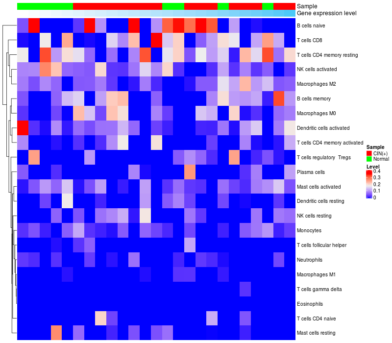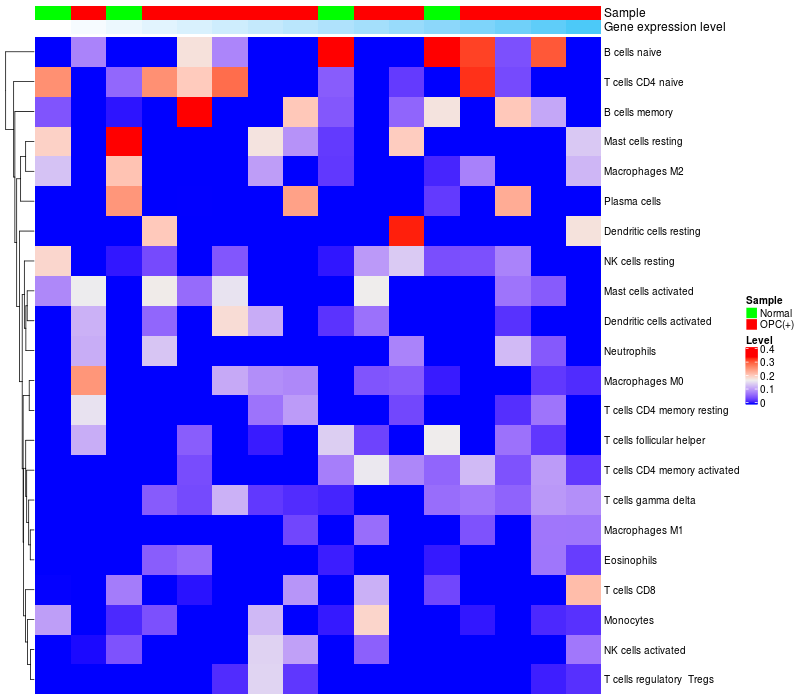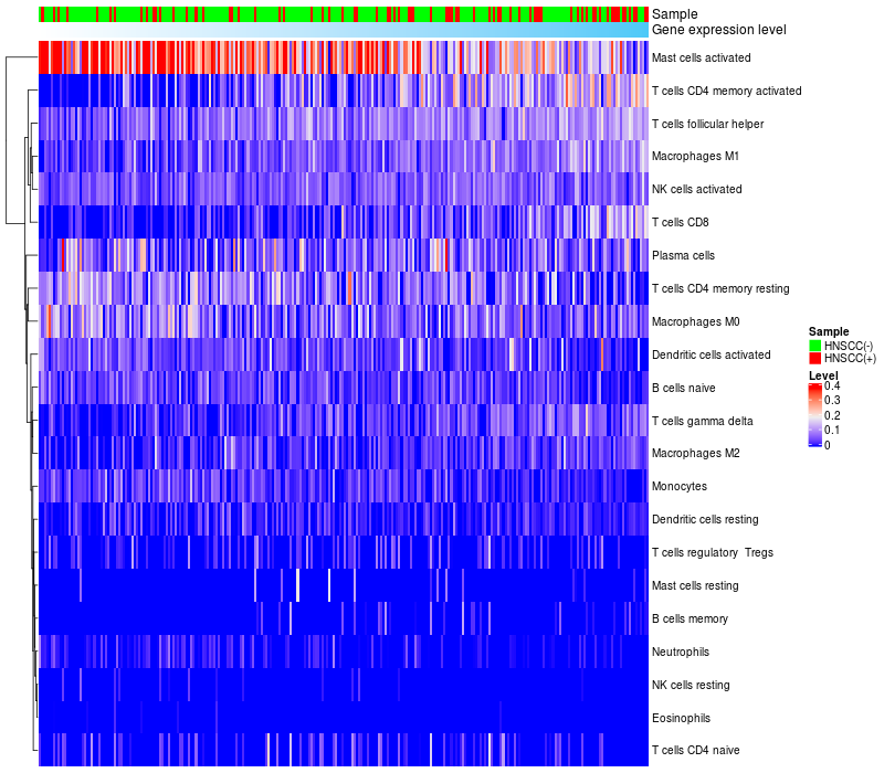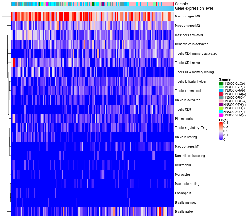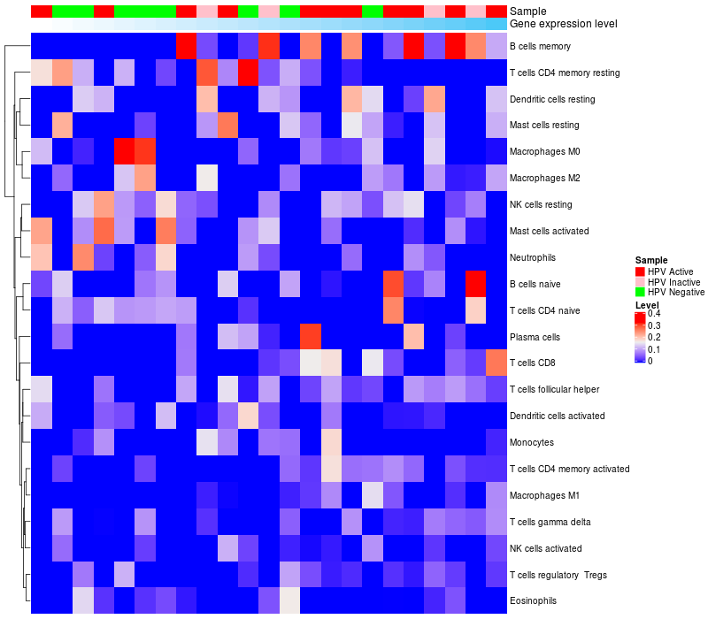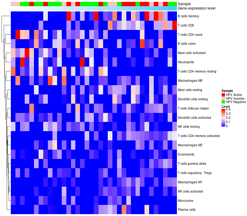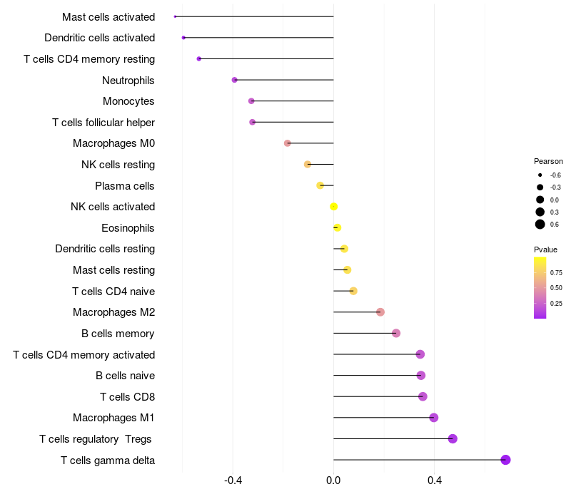Lollipop of CXCR6 expression and immune infiltrating cell level correlation result in HPV+ samples