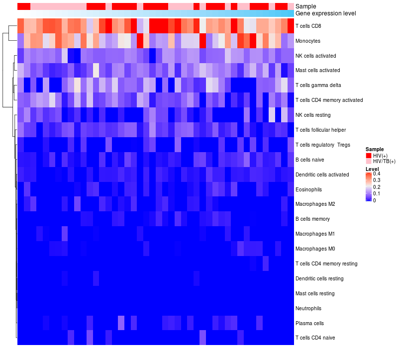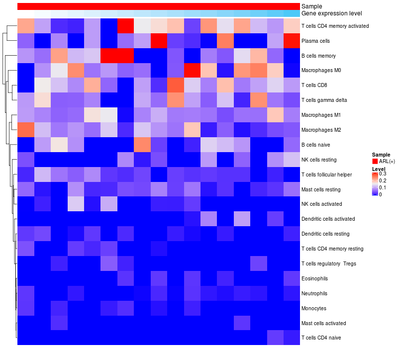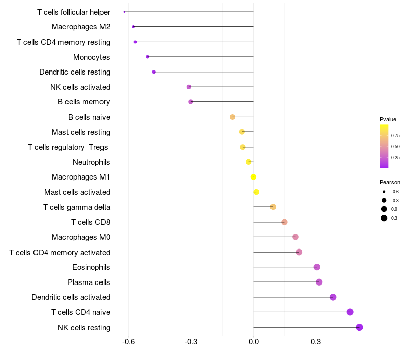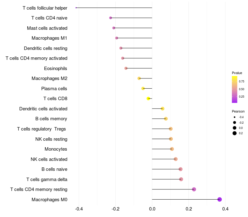 Relationship between gene expression and immune infiltrating cell level