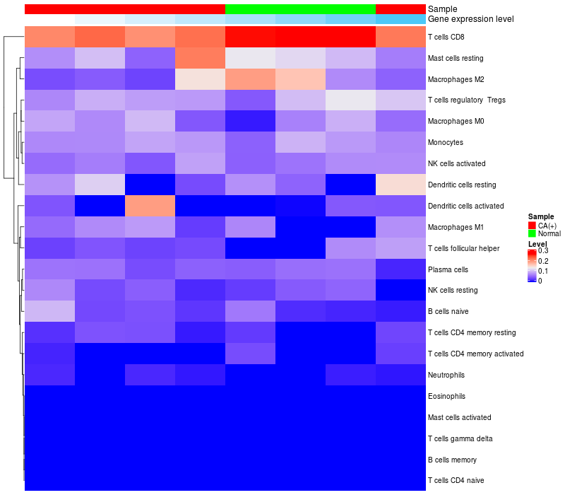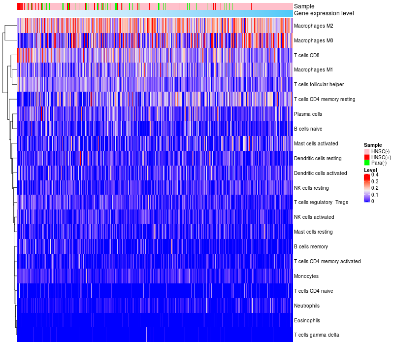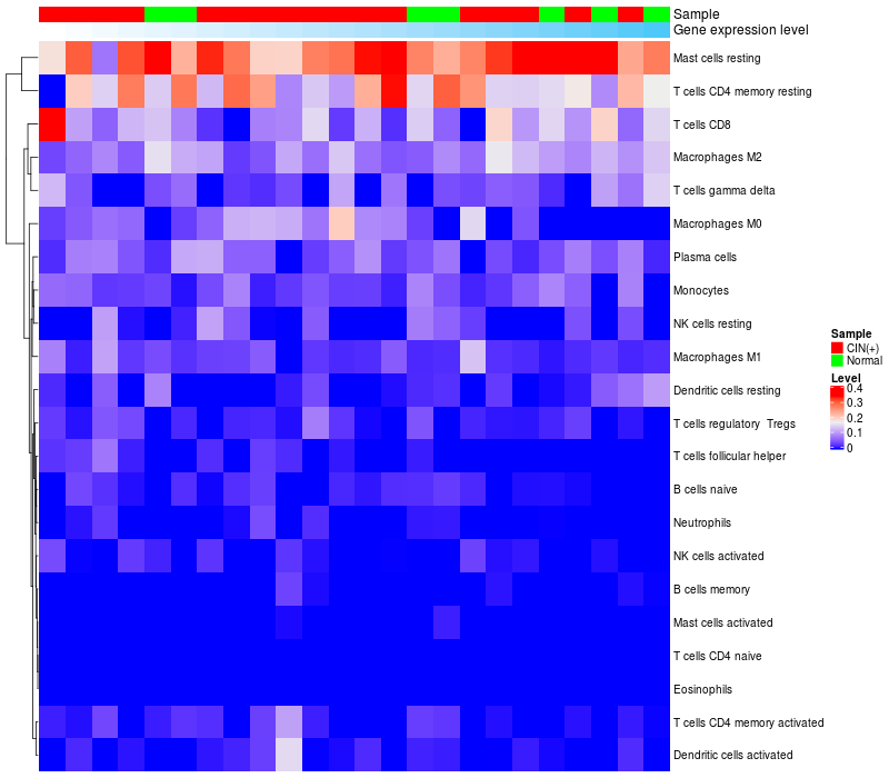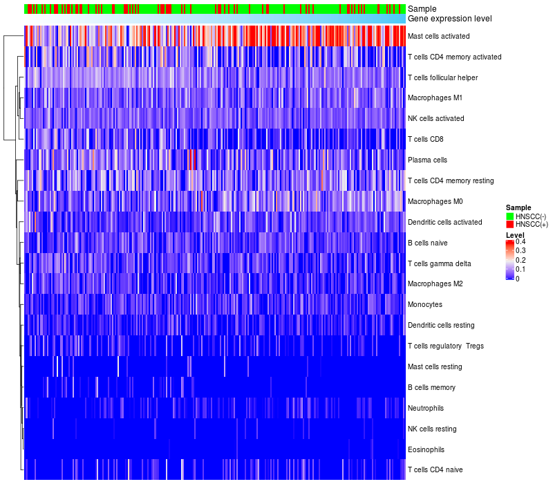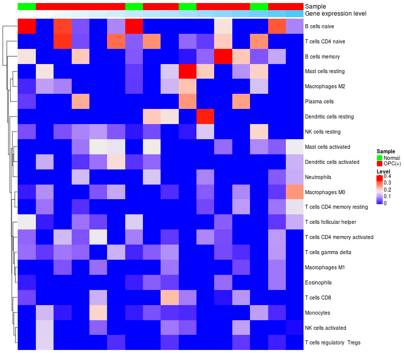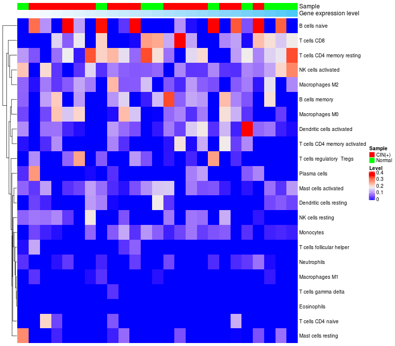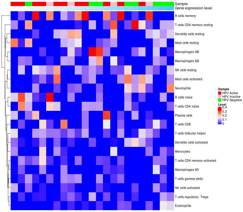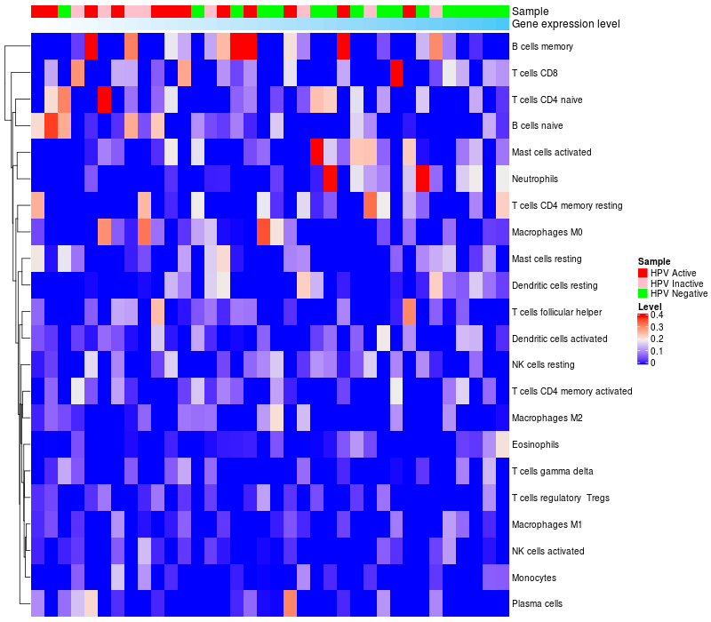 Lollipop of CYP26B1 expression and immune infiltrating cell level correlation result in HPV+ samples