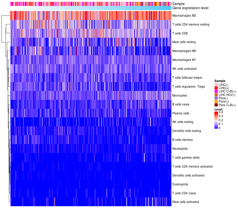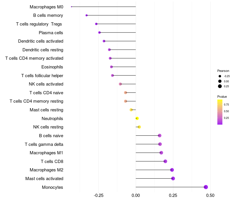 Relationship between gene expression and immune infiltrating cell level