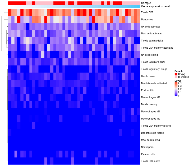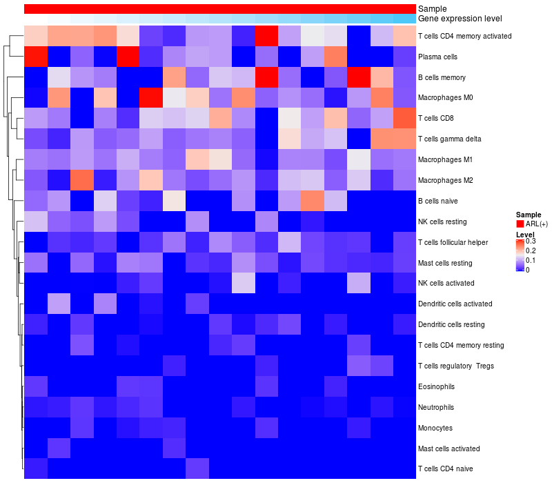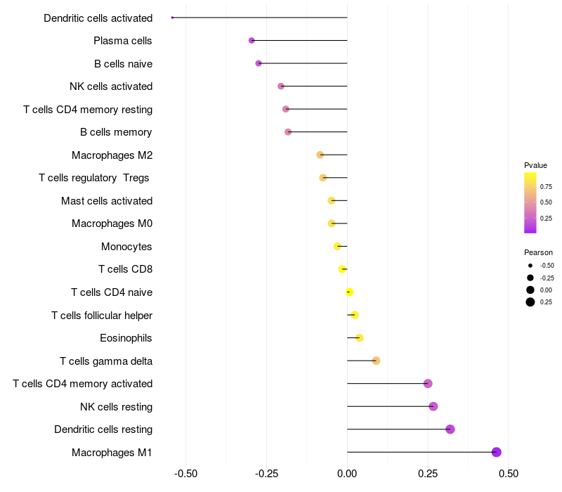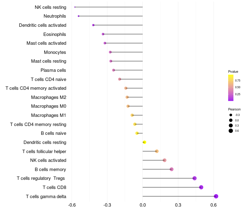 Relationship between gene expression and immune infiltrating cell level