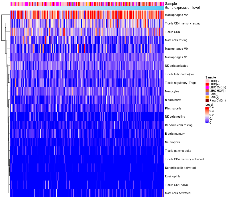 Relationship between gene expression and immune infiltrating cell level