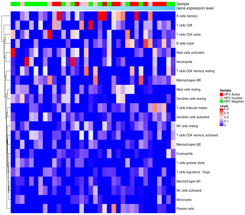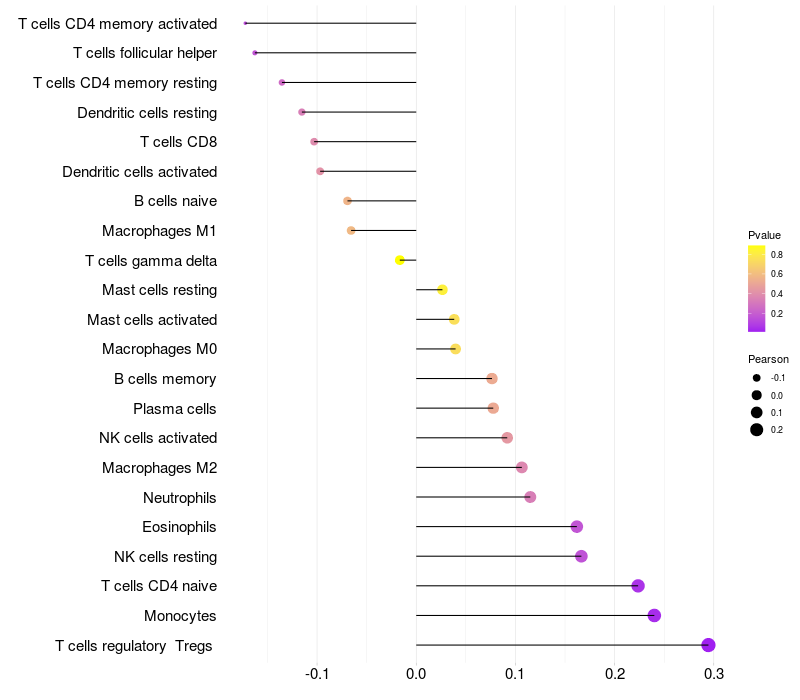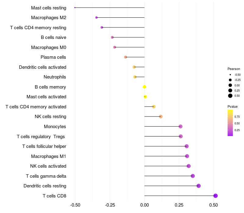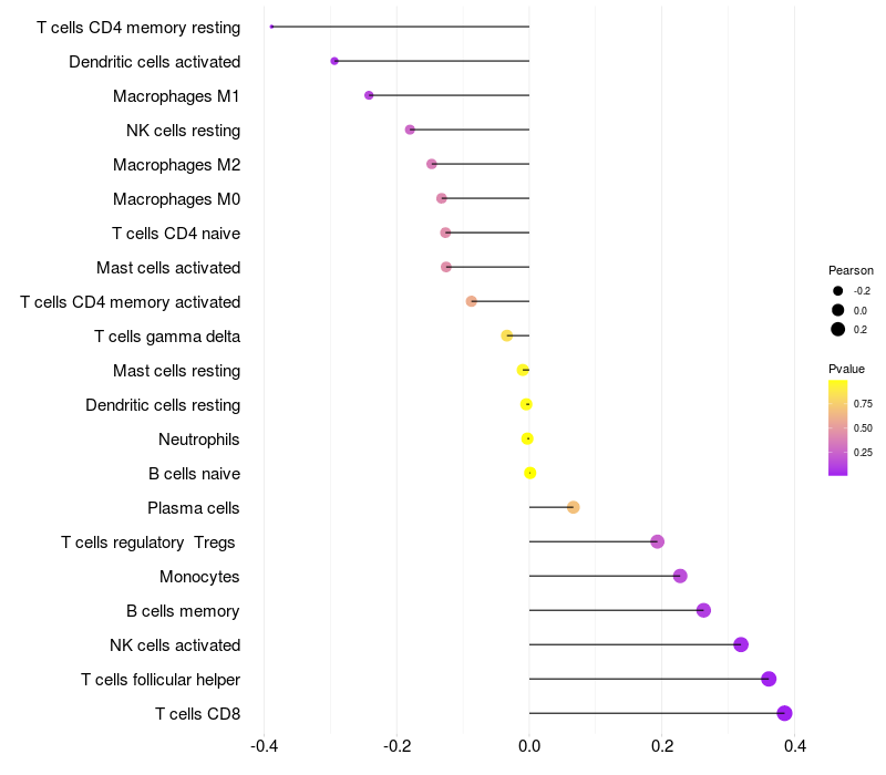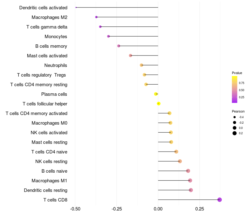 Lollipop of D2HGDH expression and immune infiltrating cell level correlation result in HPV+ samples