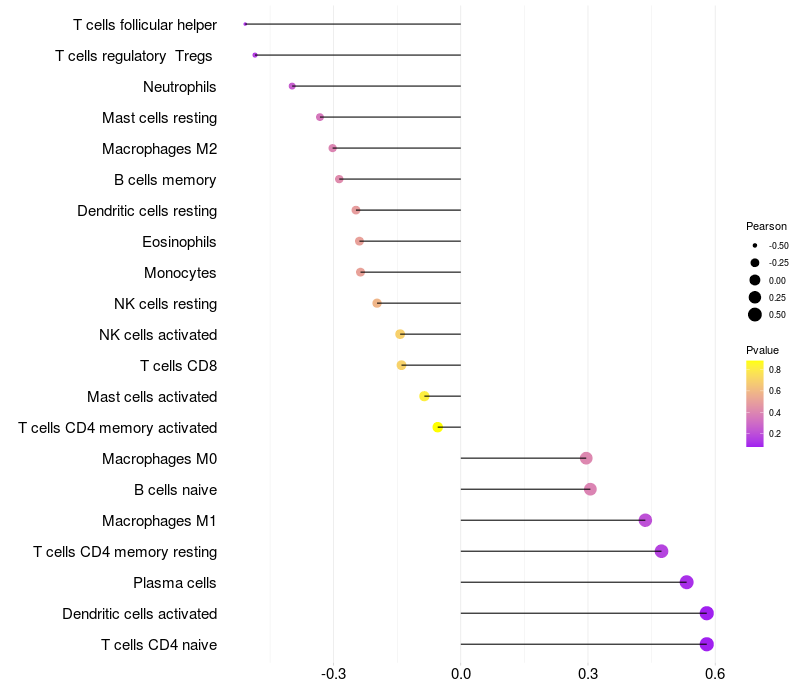 Lollipop of DAAM2 expression and immune infiltrating cell level correlation result in HBV+ Liver cirrhosis samples