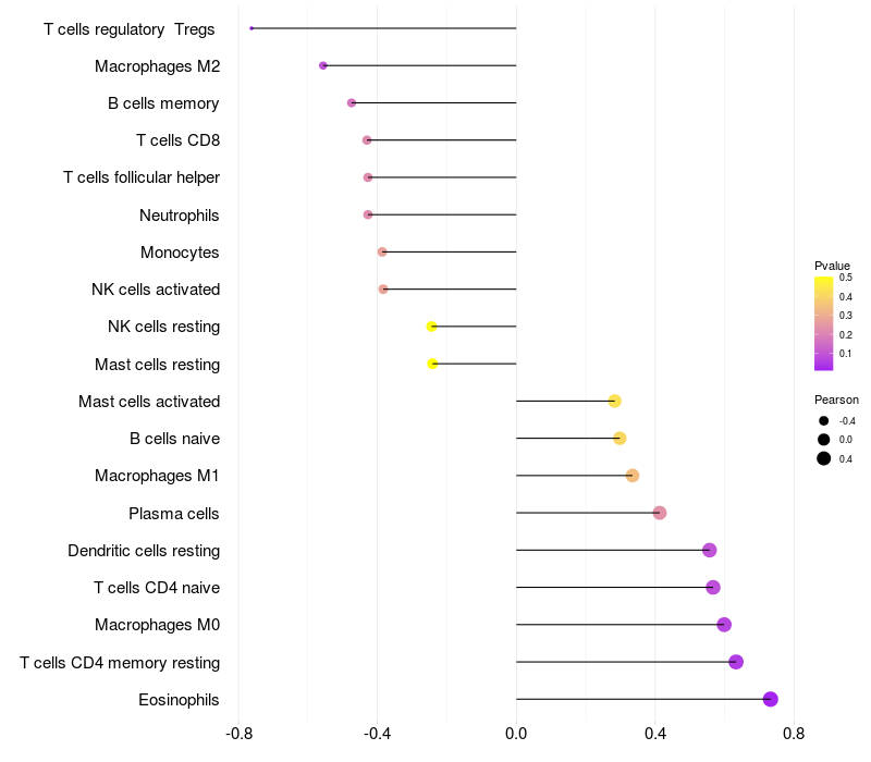 Lollipop of DAAM2 expression and immune infiltrating cell level correlation result in HBV+ samples