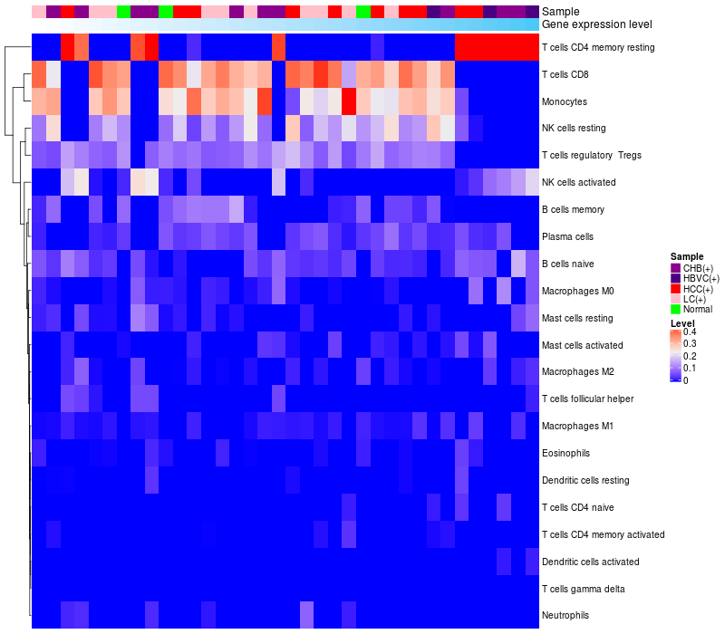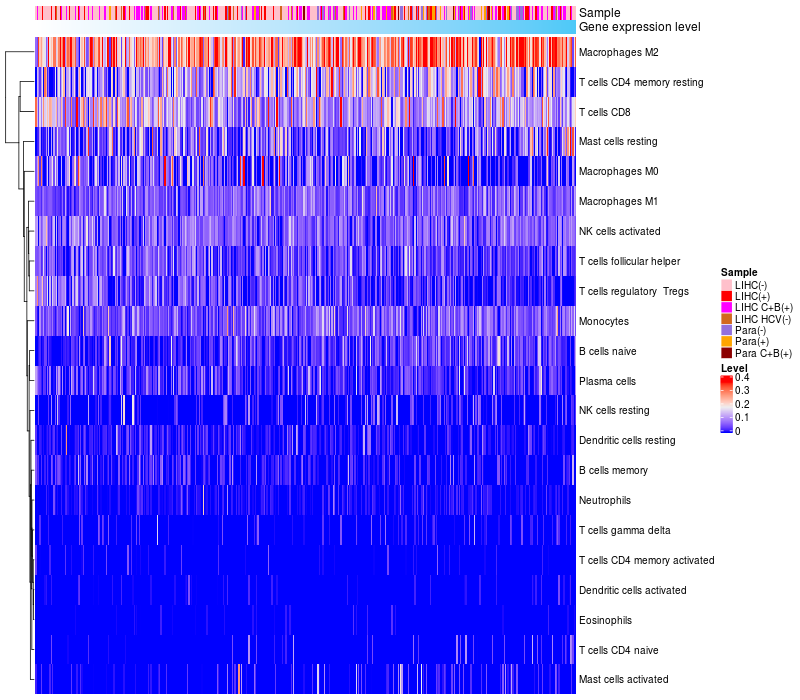 Liver hepatocellular carcinoma HCV (HBV+)(86), Liver hepatocellular carcinoma HCV (HBV-)(19), Liver hepatocellular carcinoma (HBV+)(209), Liver hepatocellular carcinoma (HBV+)(60), Paracancerous HCV (HBV+)(4), Paracancerous (HBV-)(28), Paracancerous (HBV+)(18) |
