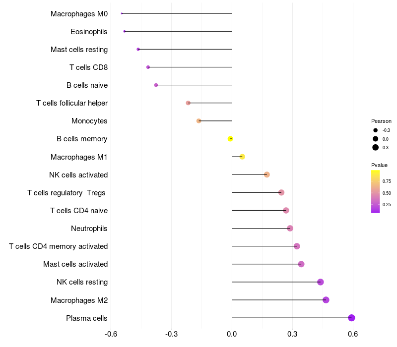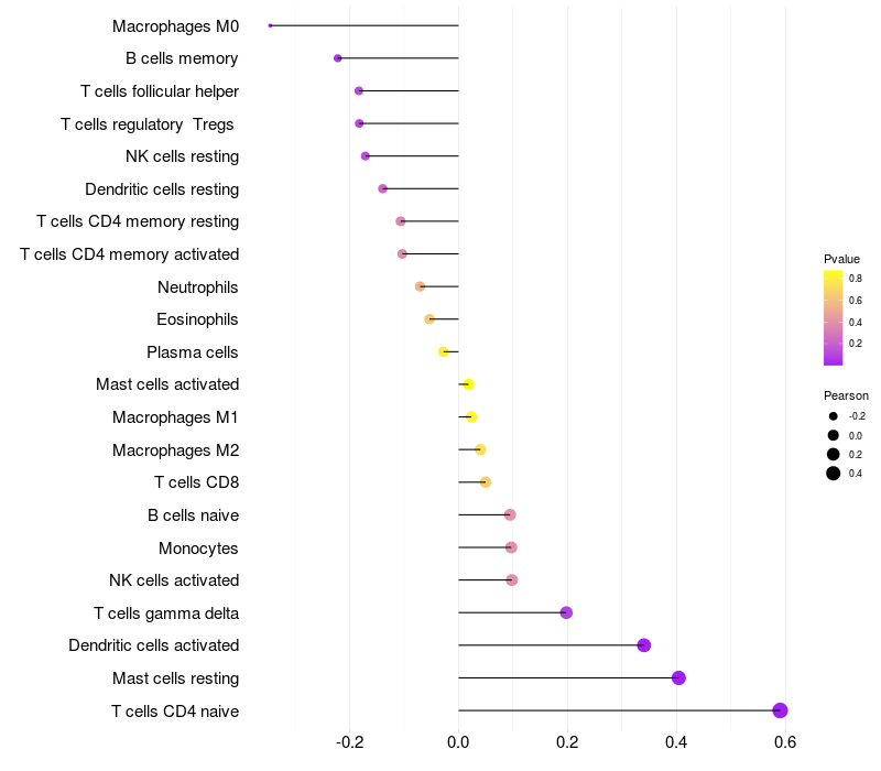Lollipop of DAAM2 expression and immune infiltrating cell level correlation result in HBV+ Chronic HBV (CHB) infection samples