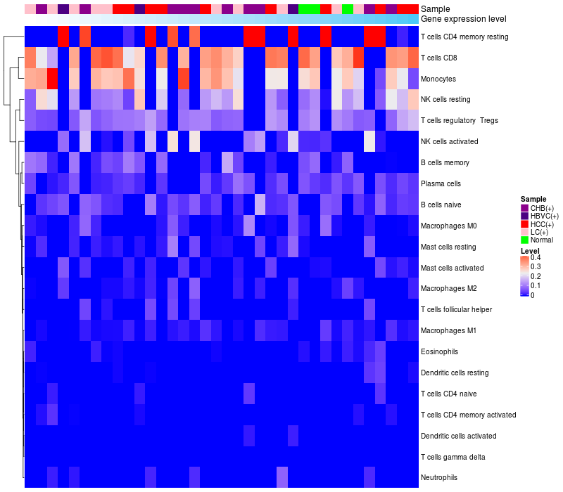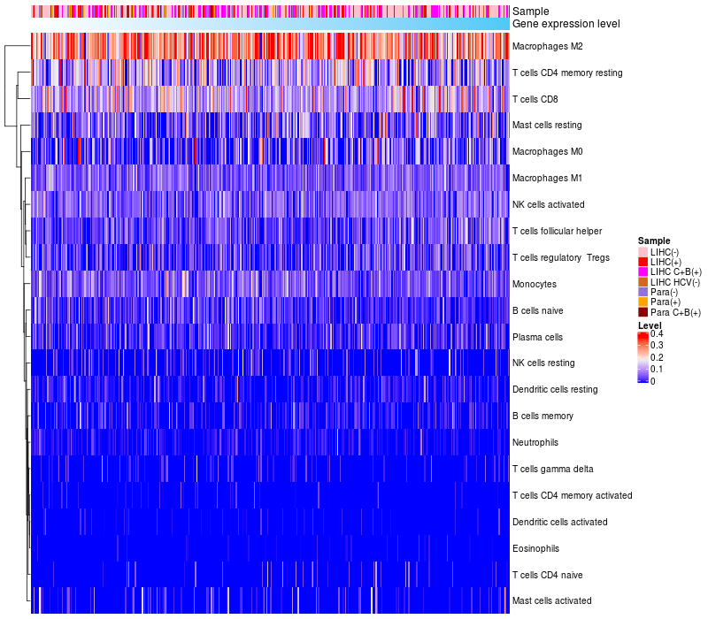 Liver hepatocellular carcinoma HCV (HBV+)(86), Liver hepatocellular carcinoma HCV (HBV-)(19), Liver hepatocellular carcinoma (HBV+)(209), Liver hepatocellular carcinoma (HBV+)(60), Paracancerous HCV (HBV+)(4), Paracancerous (HBV-)(28), Paracancerous (HBV+)(18) |