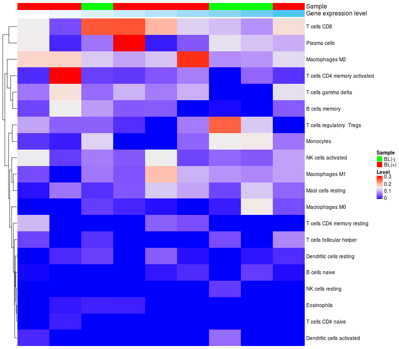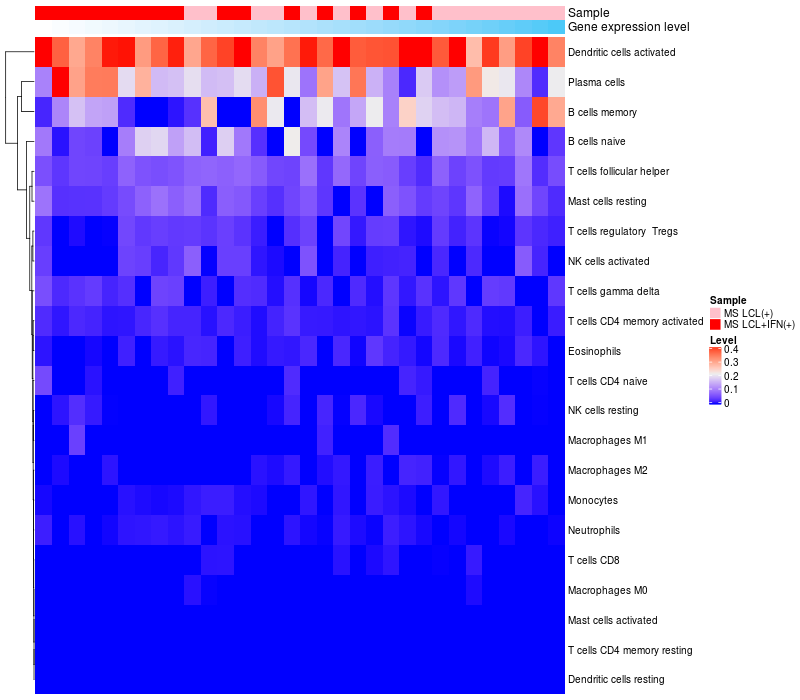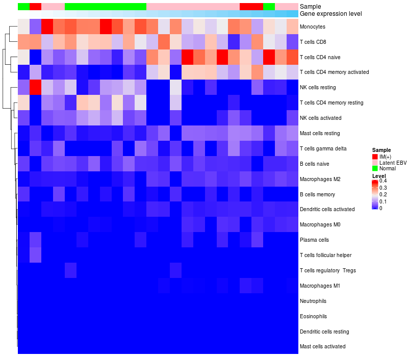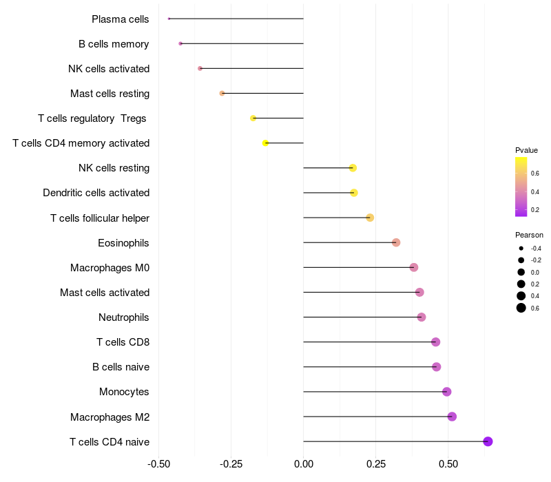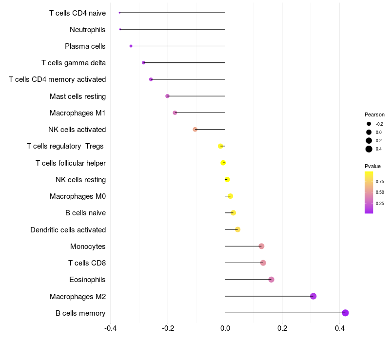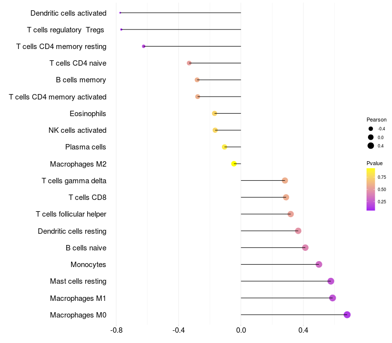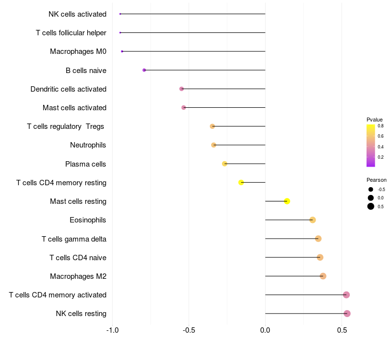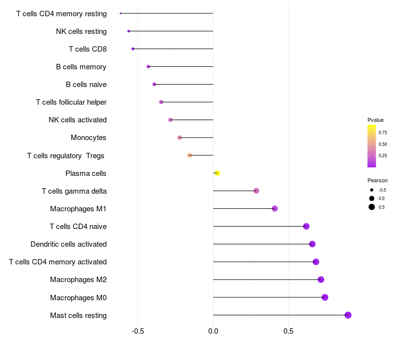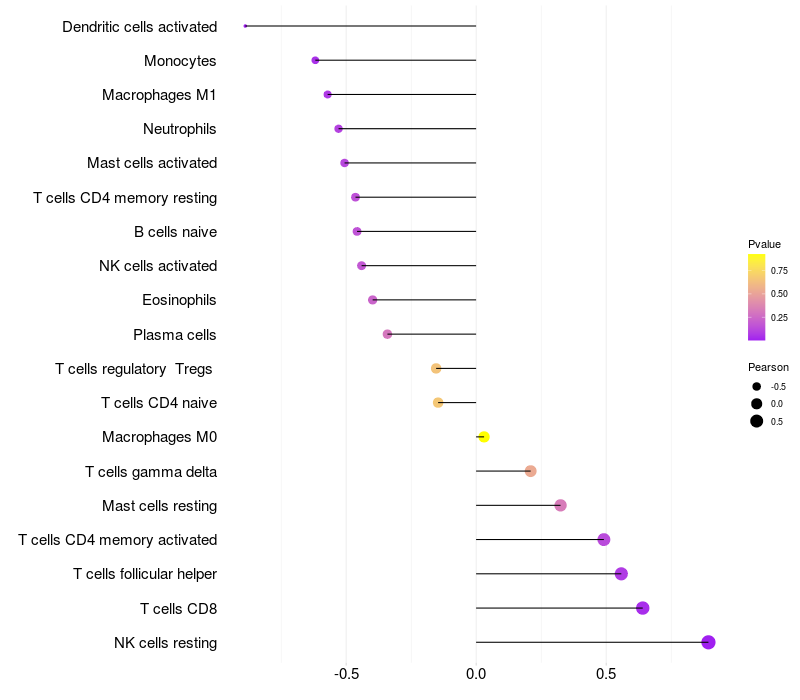 Lollipop of DAG1 expression and immune infiltrating cell level correlation result in EBV+ samples