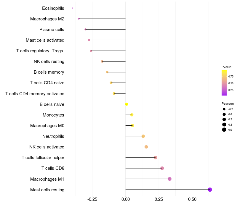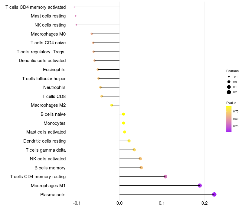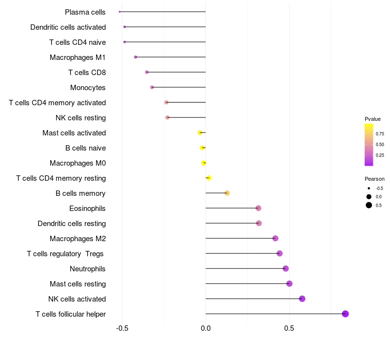 Lollipop of DAPK1 expression and immune infiltrating cell level correlation result in HBV+ Liver cirrhosis samples