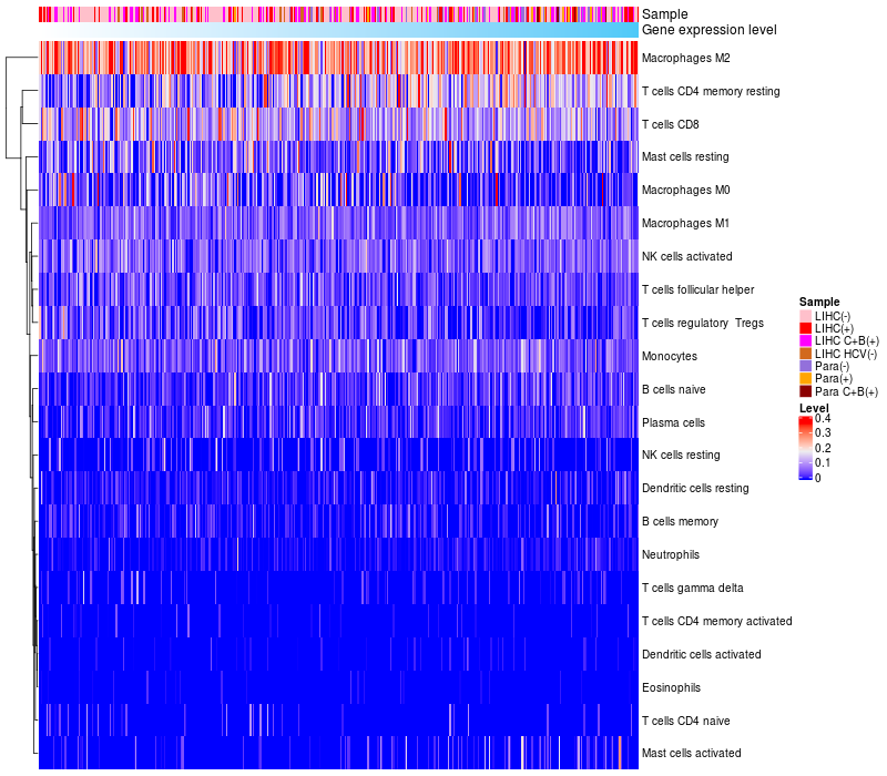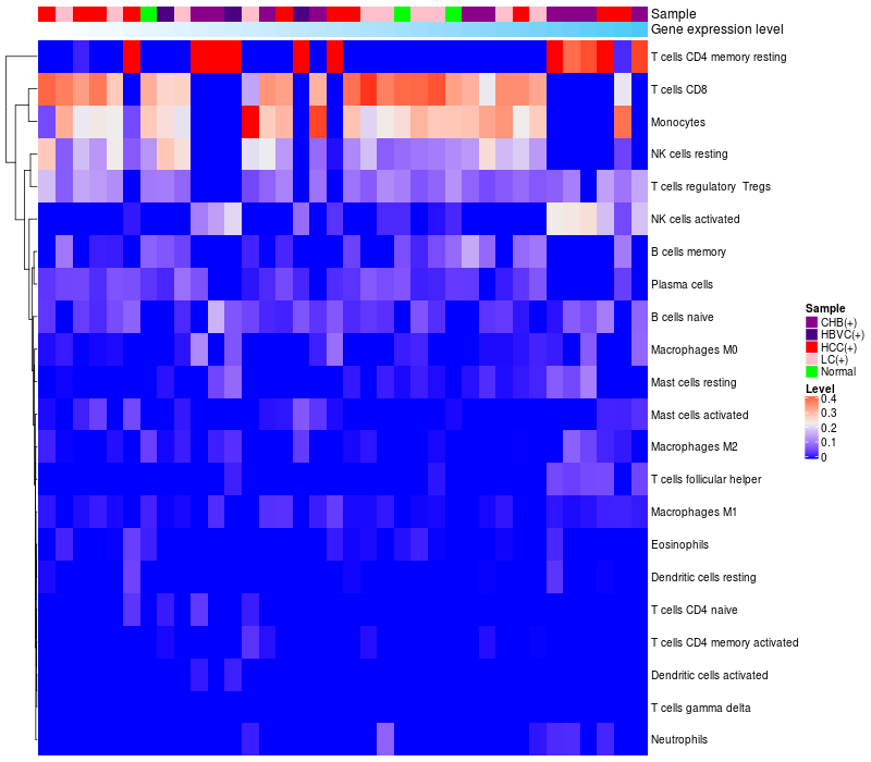 Relationship between gene expression and immune infiltrating cell level