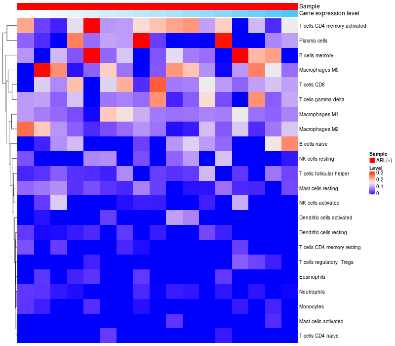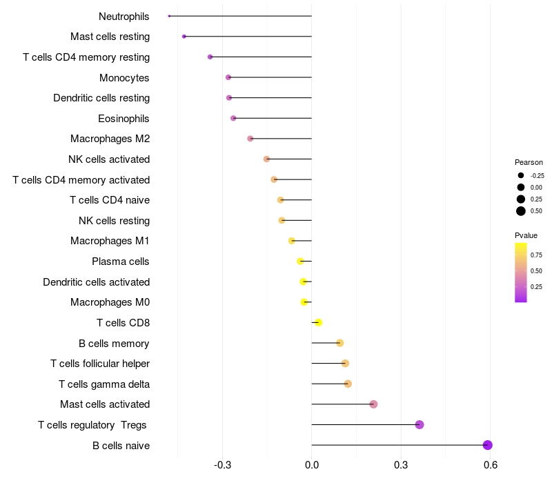 Relationship between gene expression and immune infiltrating cell level
