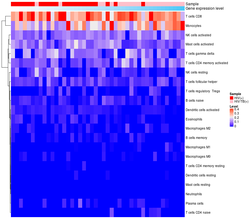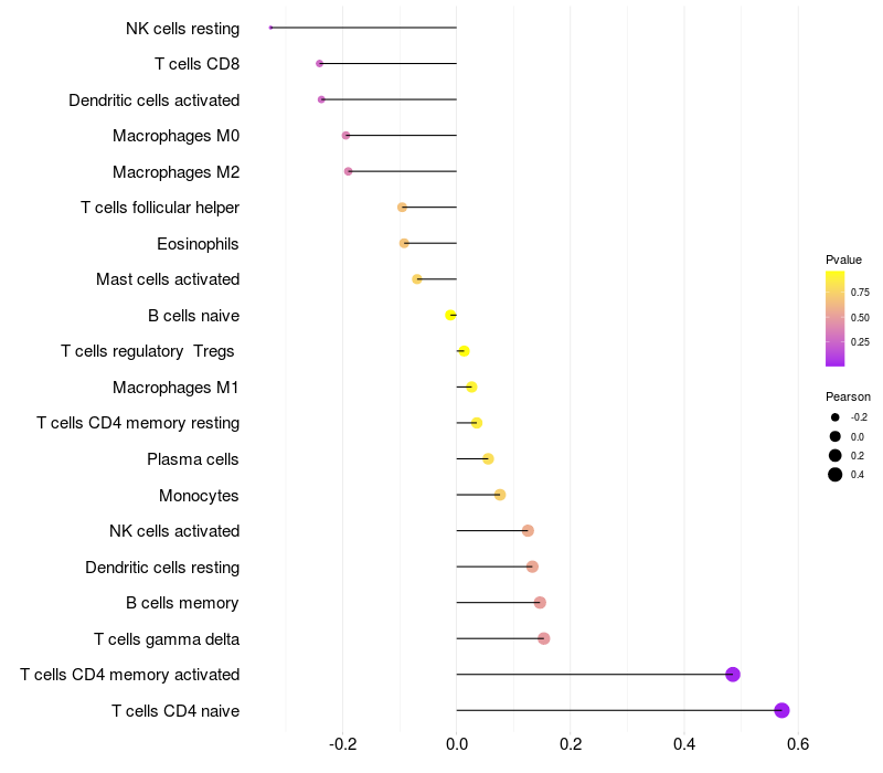 Relationship between gene expression and immune infiltrating cell level