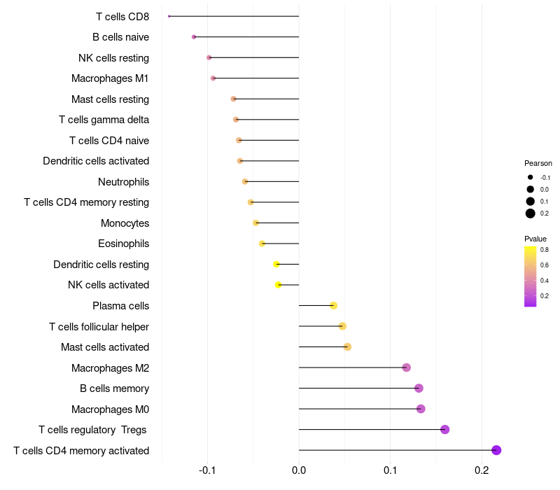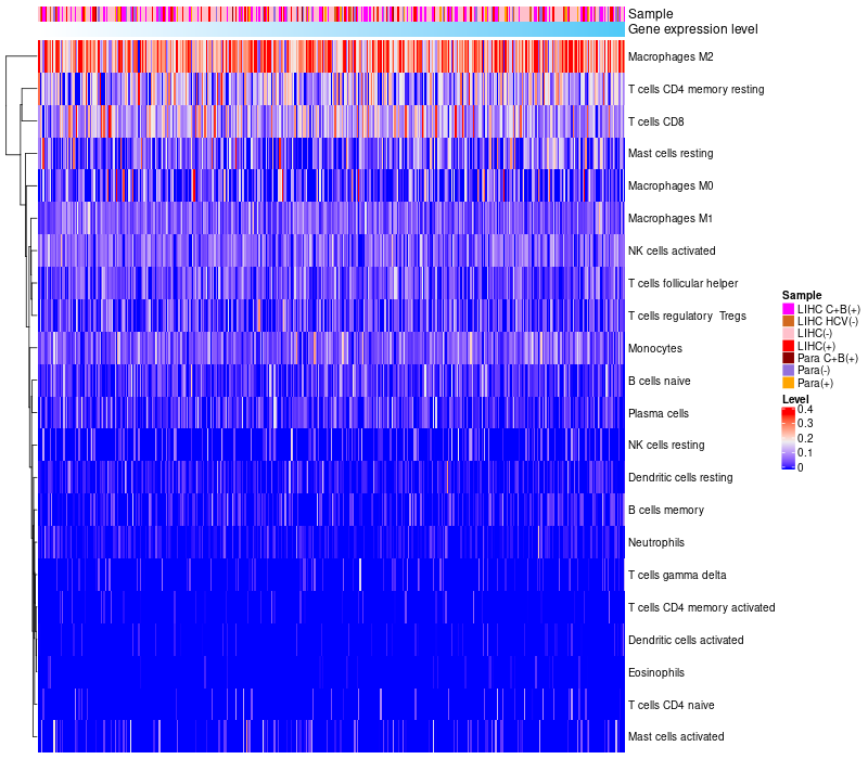 Relationship between gene expression and immune infiltrating cell level