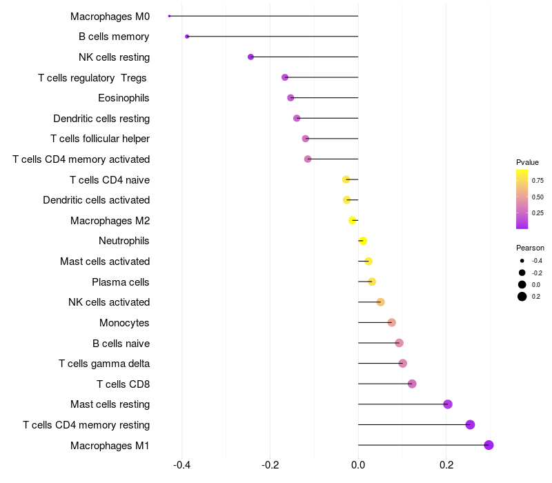 Relationship between gene expression and immune infiltrating cell level