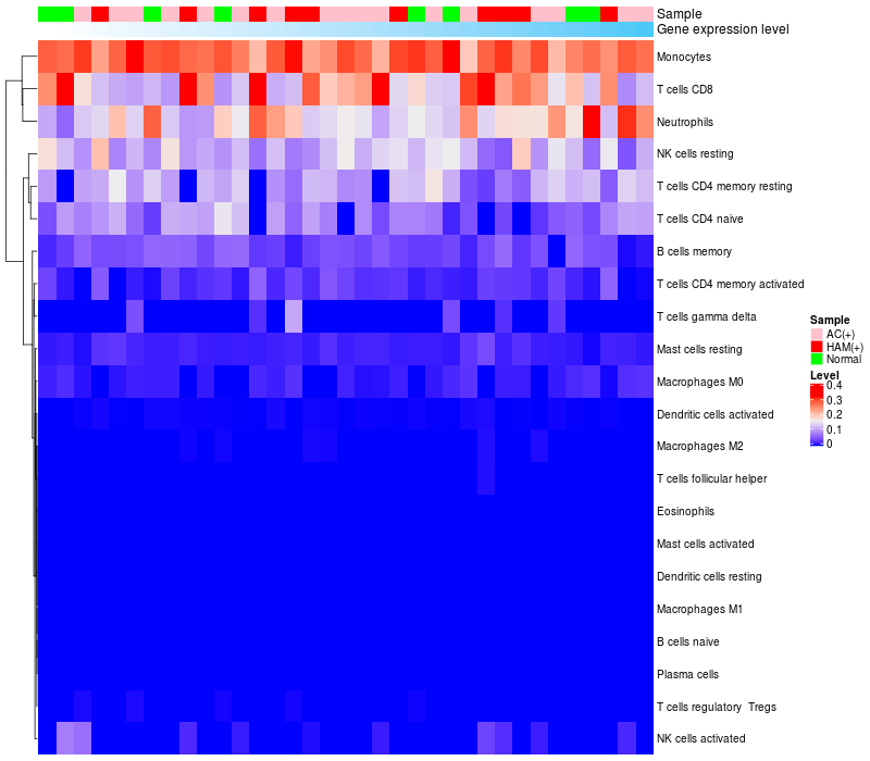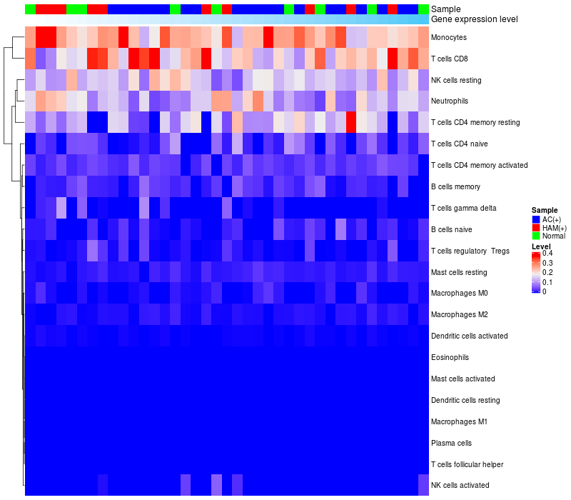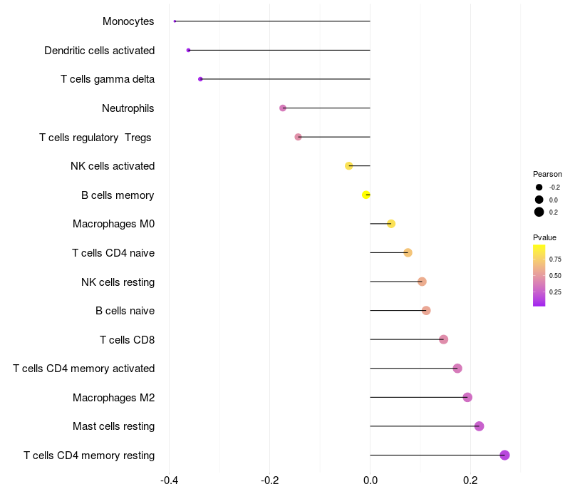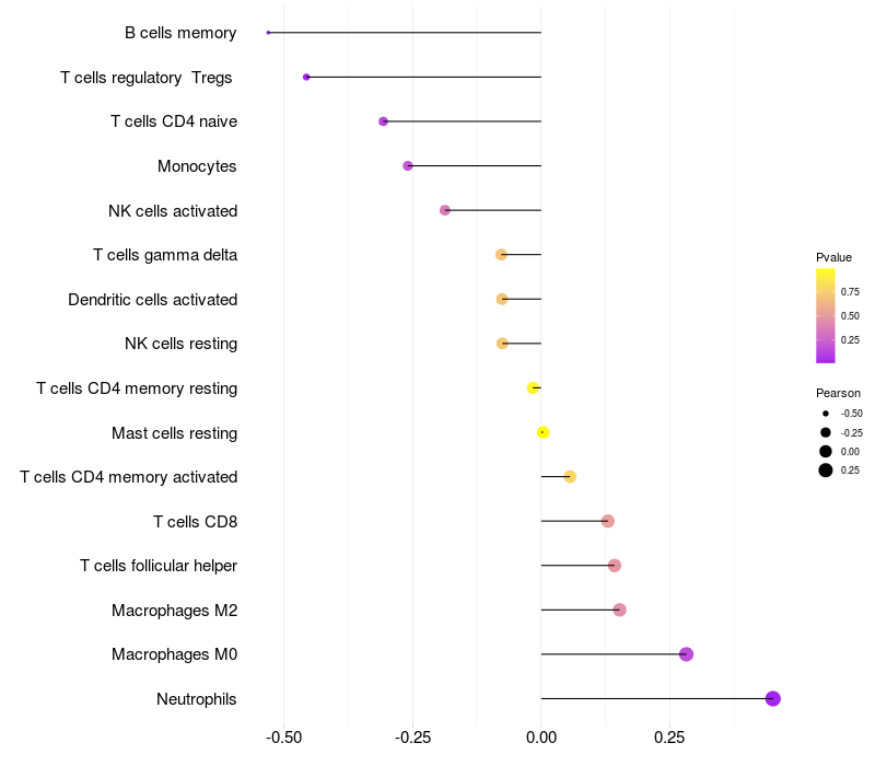 Relationship between gene expression and immune infiltrating cell level
