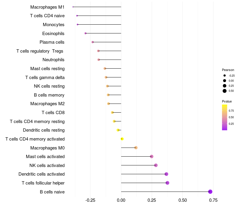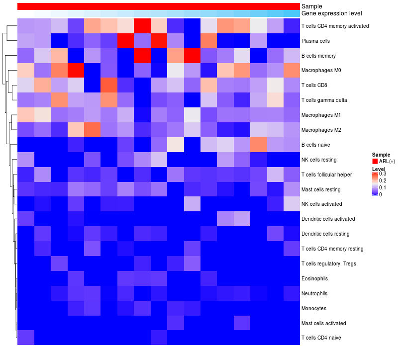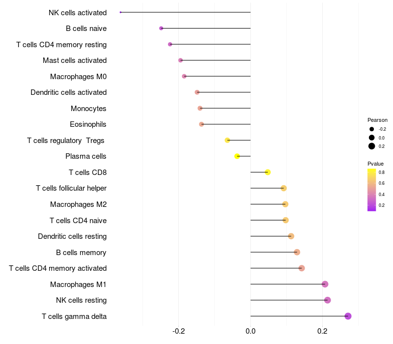 Relationship between gene expression and immune infiltrating cell level