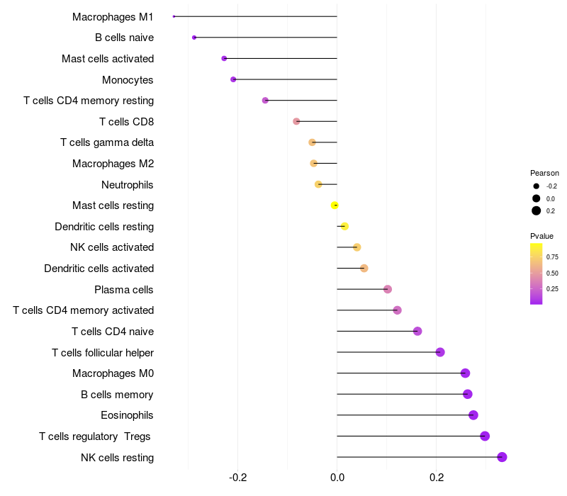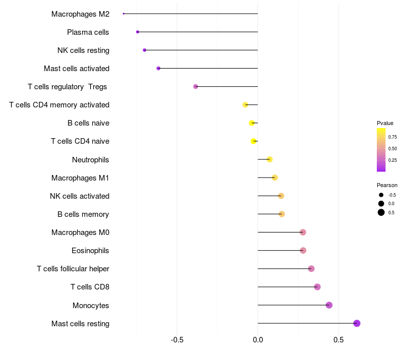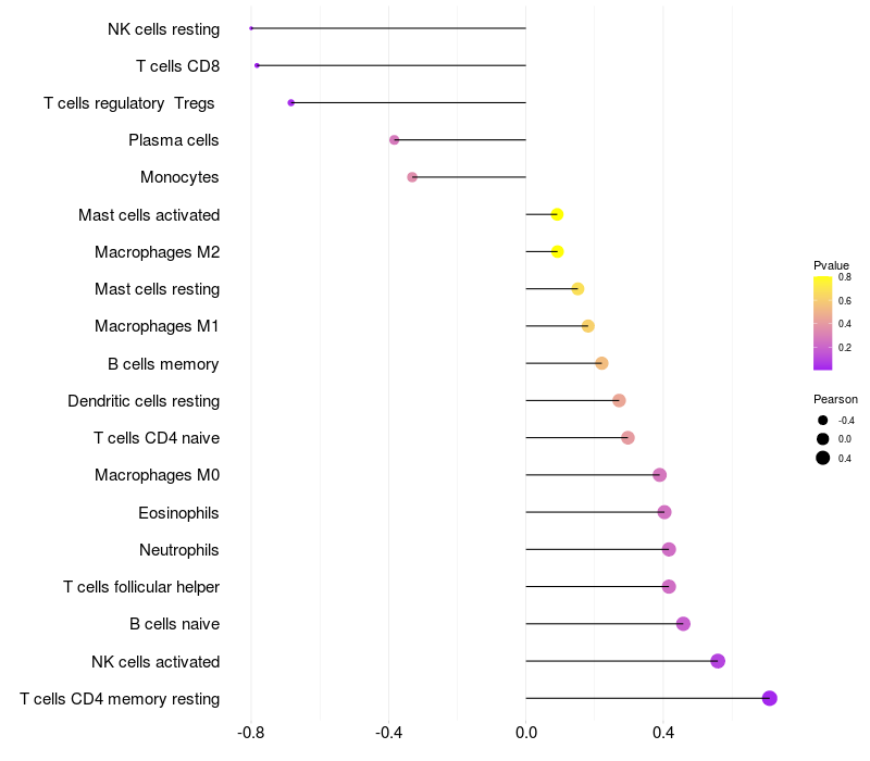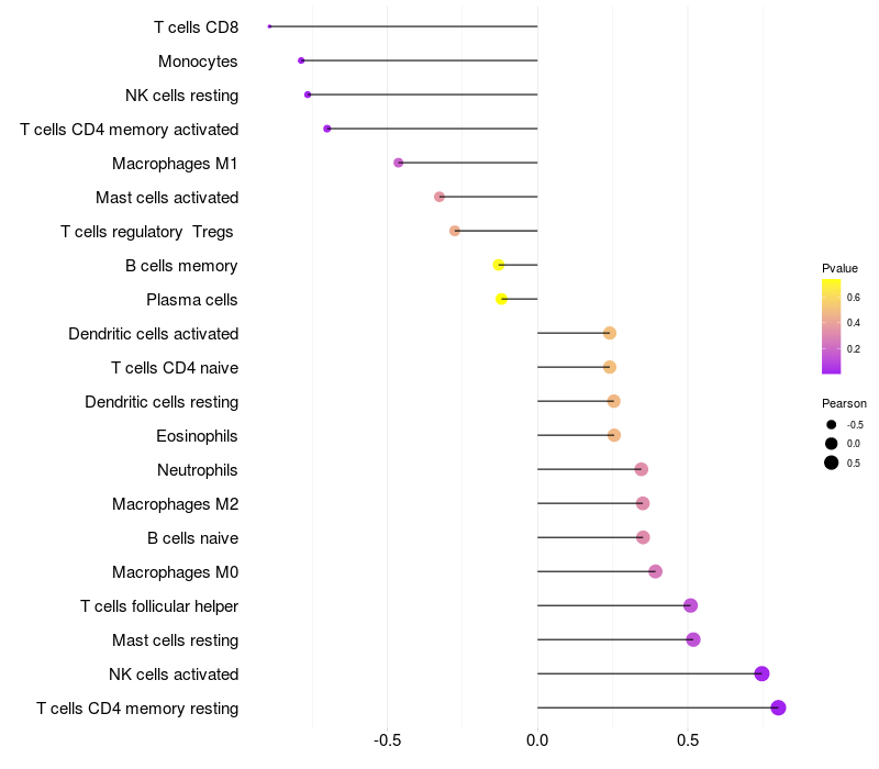 Lollipop of DCTN2 expression and immune infiltrating cell level correlation result in HBV+ Liver cirrhosis samples