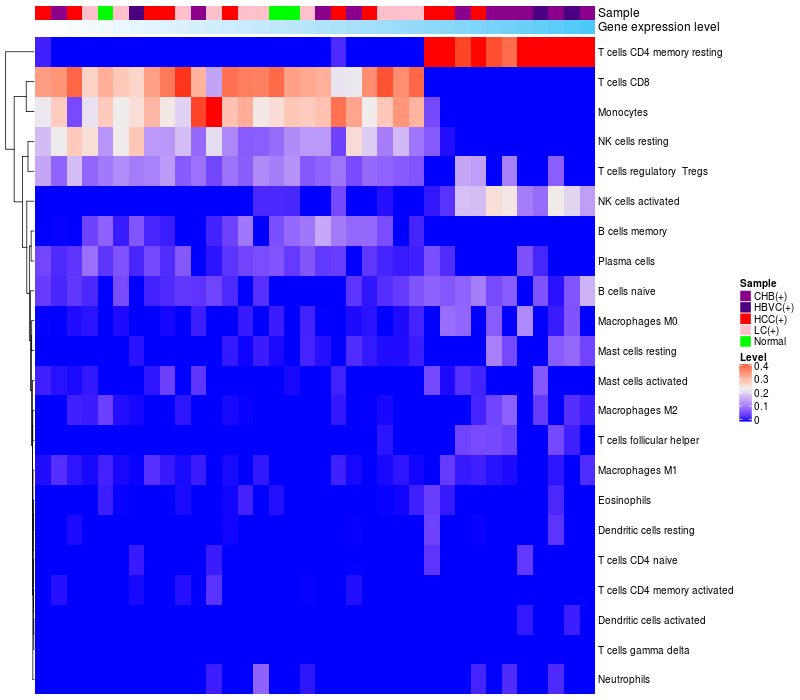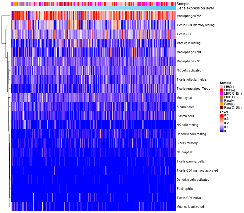 Liver hepatocellular carcinoma HCV (HBV+)(86), Liver hepatocellular carcinoma HCV (HBV-)(19), Liver hepatocellular carcinoma (HBV+)(209), Liver hepatocellular carcinoma (HBV+)(60), Paracancerous HCV (HBV+)(4), Paracancerous (HBV-)(28), Paracancerous (HBV+)(18) |
