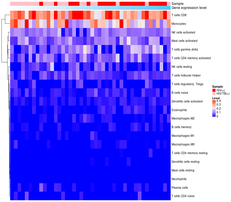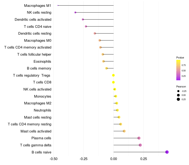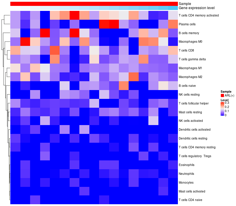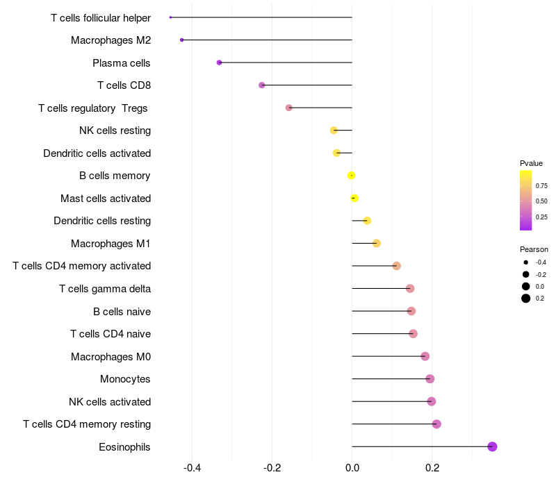 Relationship between gene expression and immune infiltrating cell level