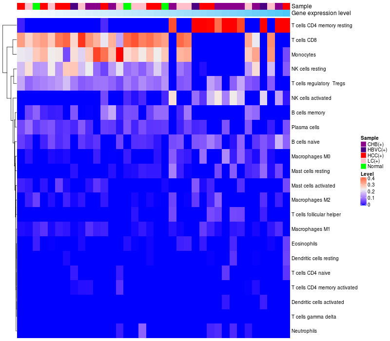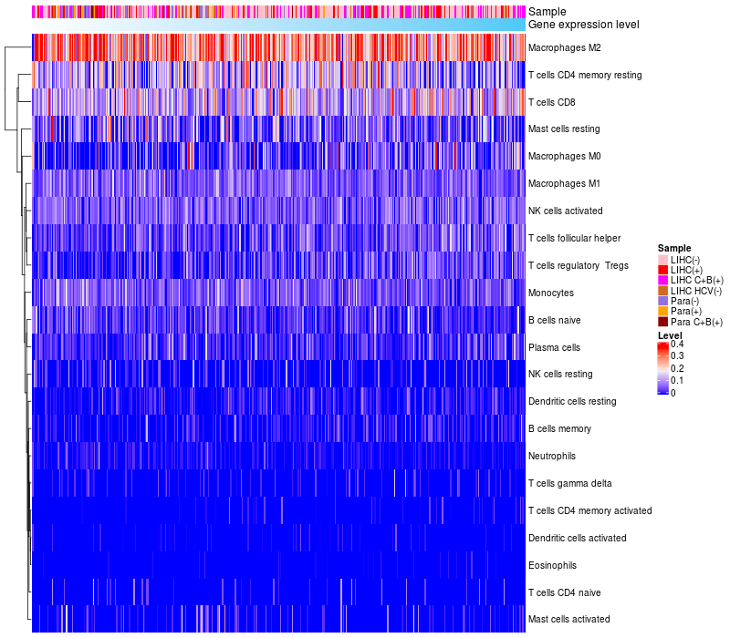 Liver hepatocellular carcinoma HCV (HBV+)(86), Liver hepatocellular carcinoma HCV (HBV-)(19), Liver hepatocellular carcinoma (HBV+)(209), Liver hepatocellular carcinoma (HBV+)(60), Paracancerous HCV (HBV+)(4), Paracancerous (HBV-)(28), Paracancerous (HBV+)(18) |