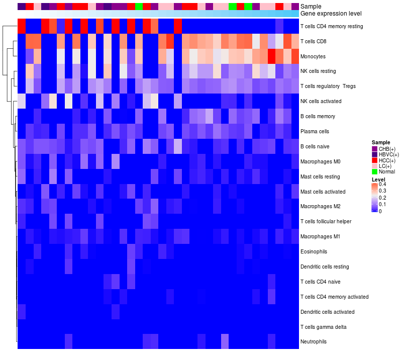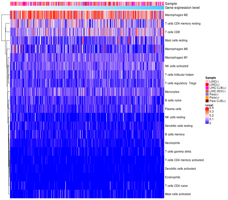 Liver hepatocellular carcinoma HCV (HBV+)(86), Liver hepatocellular carcinoma HCV (HBV-)(19), Liver hepatocellular carcinoma (HBV+)(209), Liver hepatocellular carcinoma (HBV+)(60), Paracancerous HCV (HBV+)(4), Paracancerous (HBV-)(28), Paracancerous (HBV+)(18) |