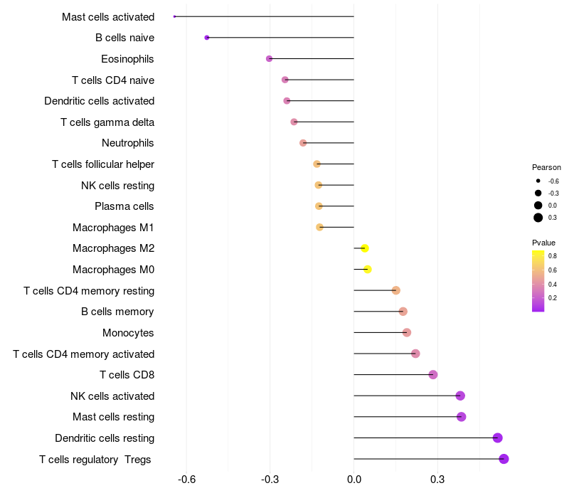 Relationship between gene expression and immune infiltrating cell level