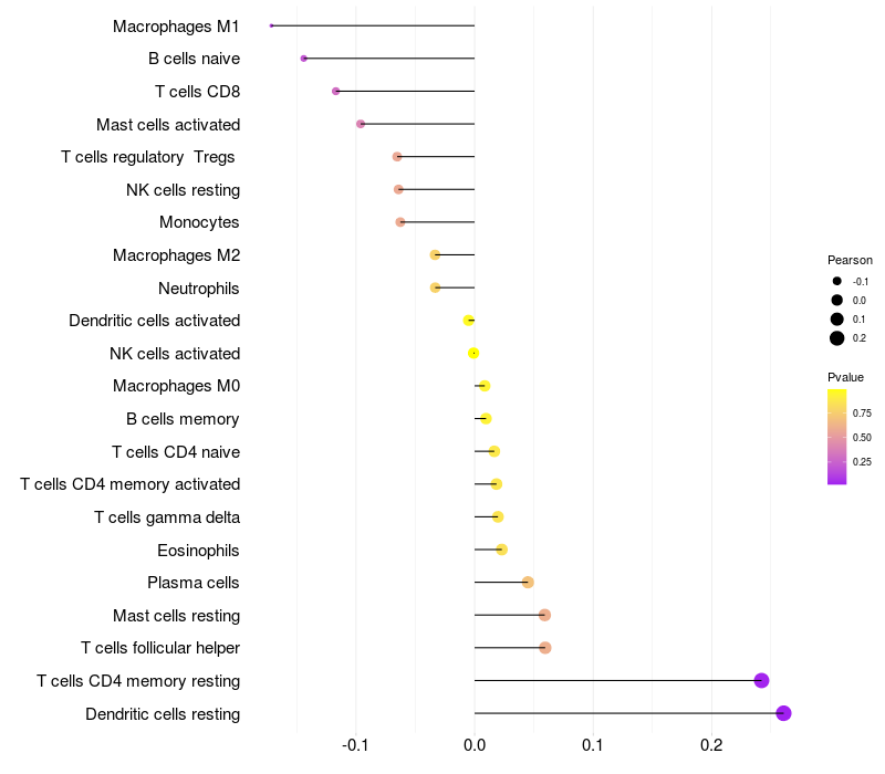 Relationship between gene expression and immune infiltrating cell level