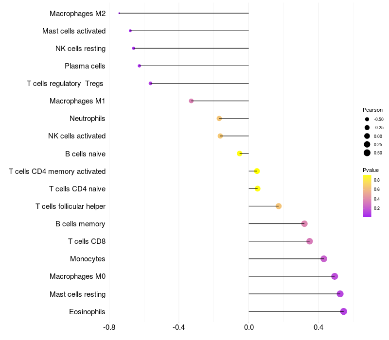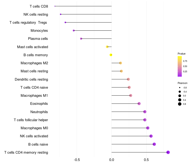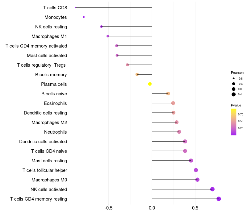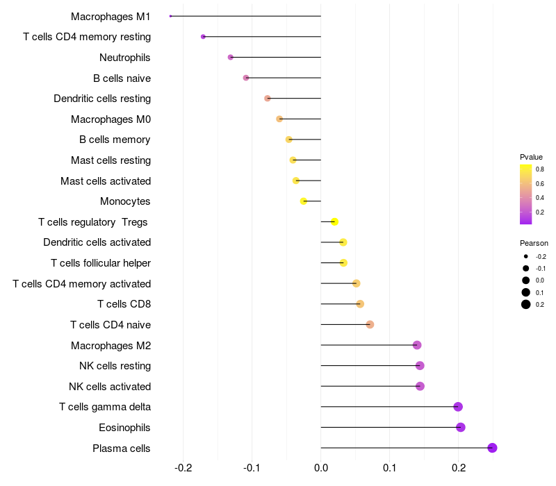 Lollipop of DHDDS expression and immune infiltrating cell level correlation result in HBV+ Liver cirrhosis samples