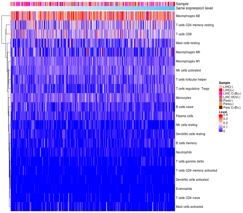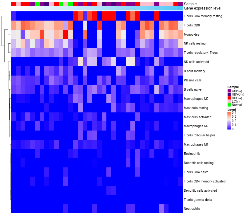 Relationship between gene expression and immune infiltrating cell level