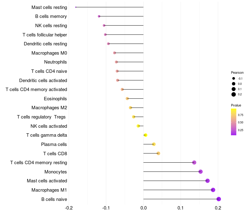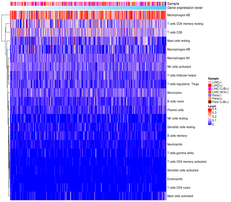 Relationship between gene expression and immune infiltrating cell level