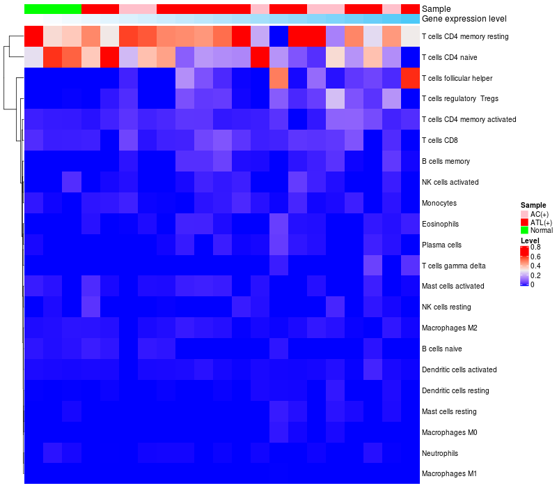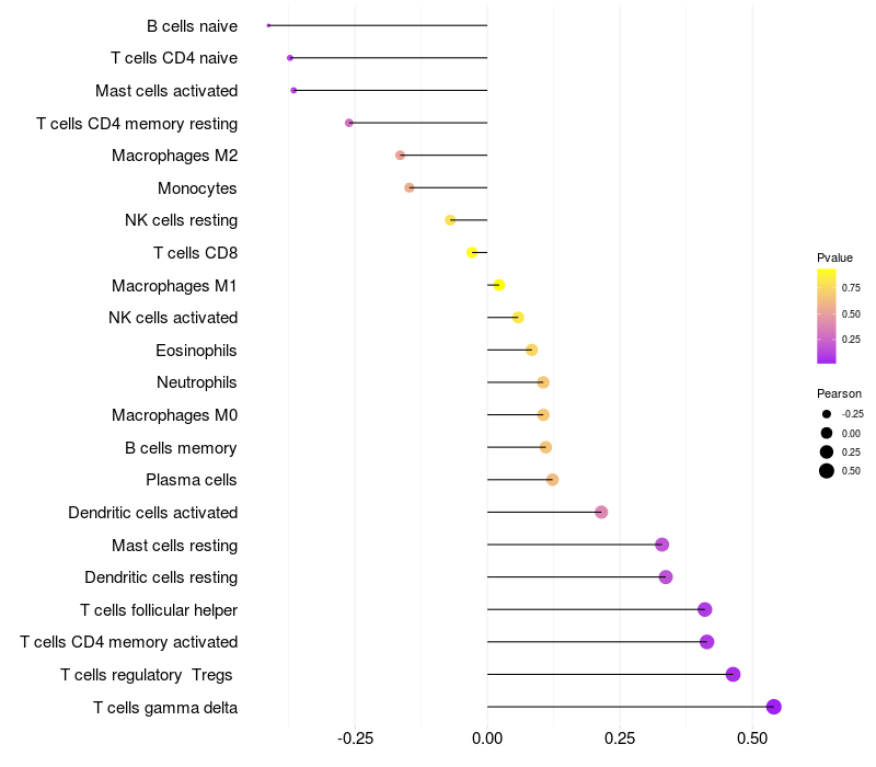 Relationship between gene expression and immune infiltrating cell level