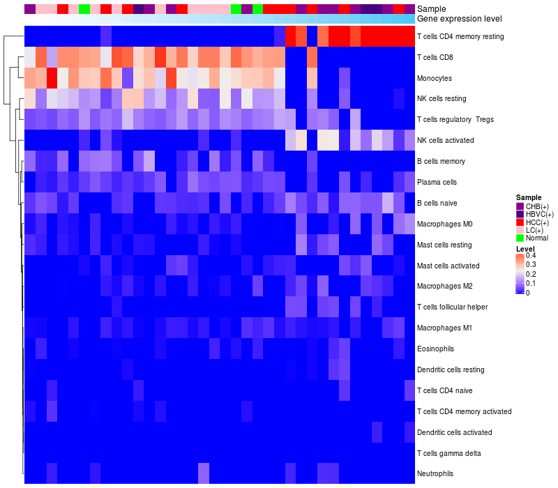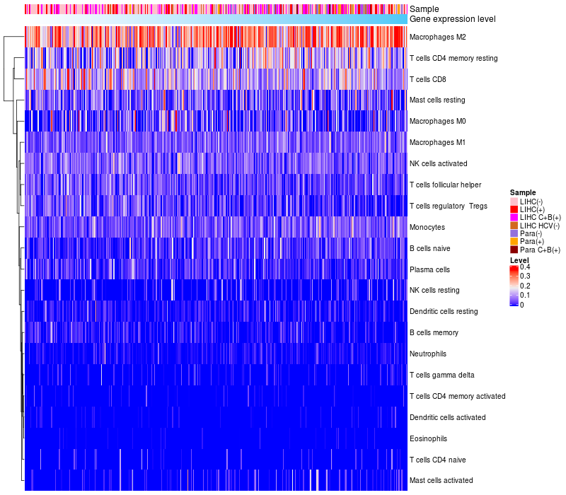 Liver hepatocellular carcinoma HCV (HBV+)(86), Liver hepatocellular carcinoma HCV (HBV-)(19), Liver hepatocellular carcinoma (HBV+)(209), Liver hepatocellular carcinoma (HBV+)(60), Paracancerous HCV (HBV+)(4), Paracancerous (HBV-)(28), Paracancerous (HBV+)(18) |