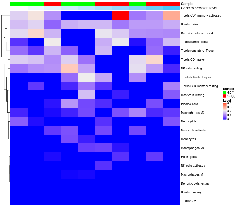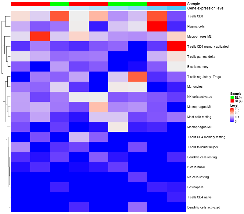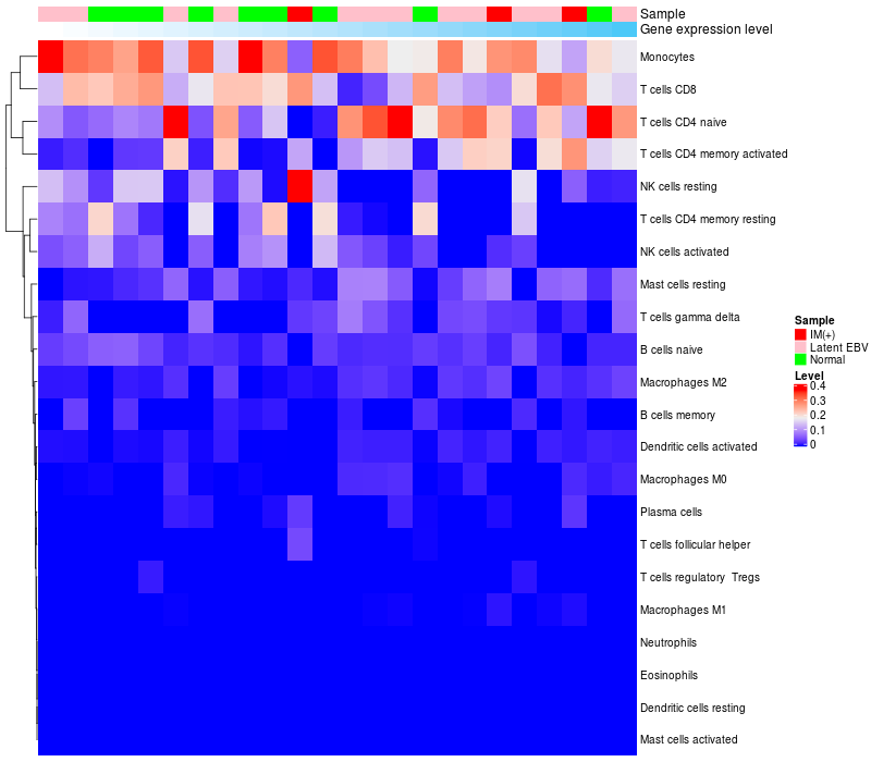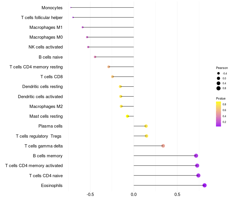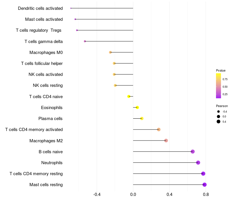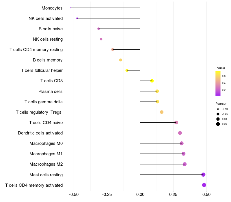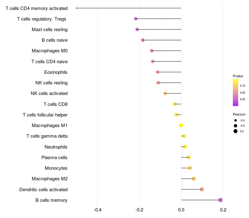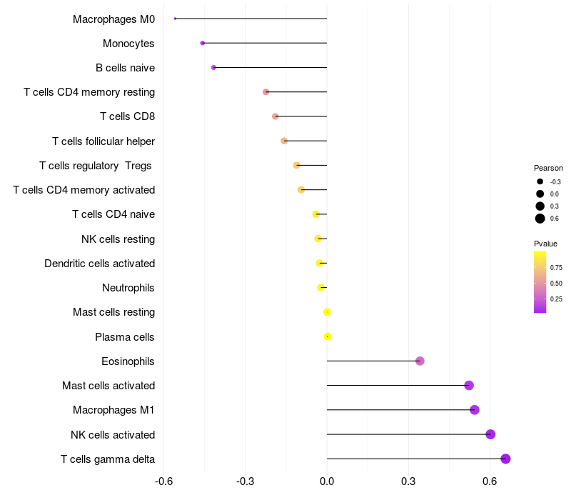 Lollipop of DKK2 expression and immune infiltrating cell level correlation result in EBV+ samples