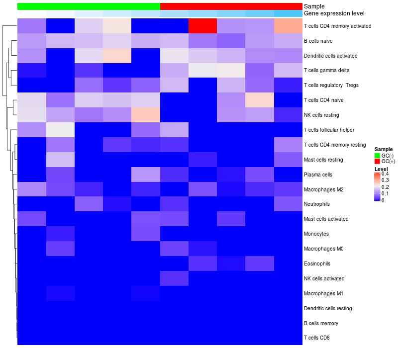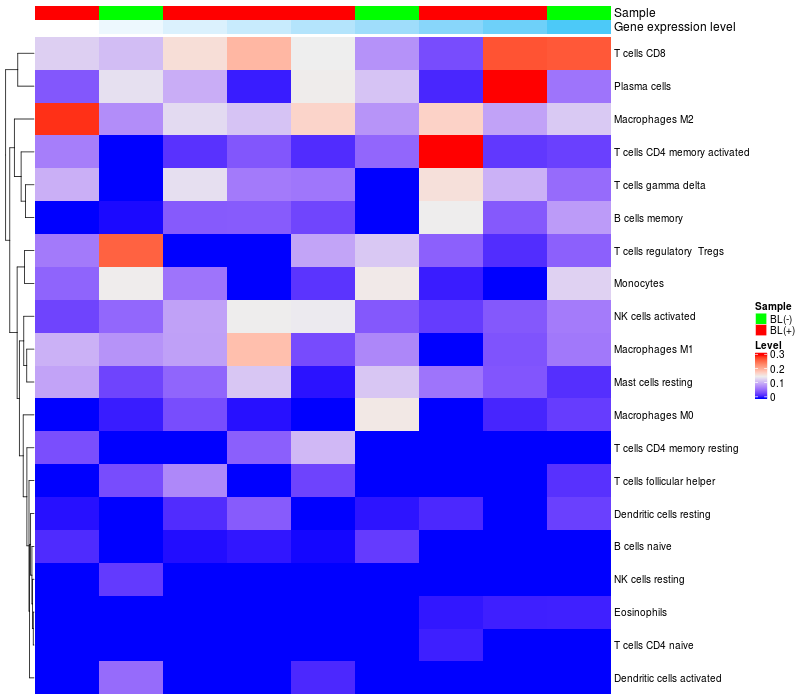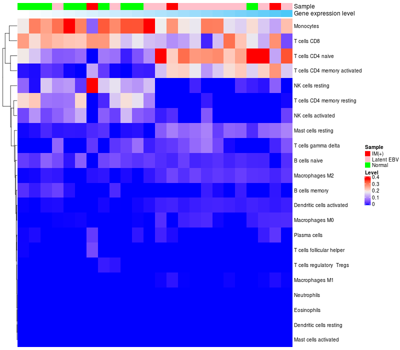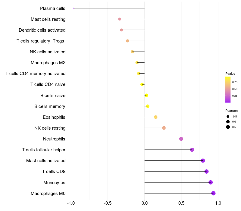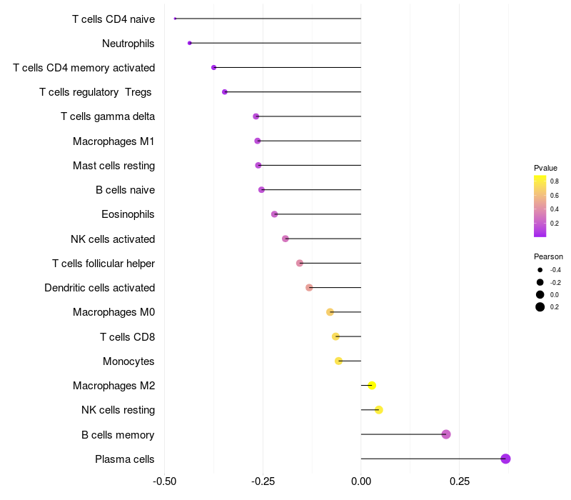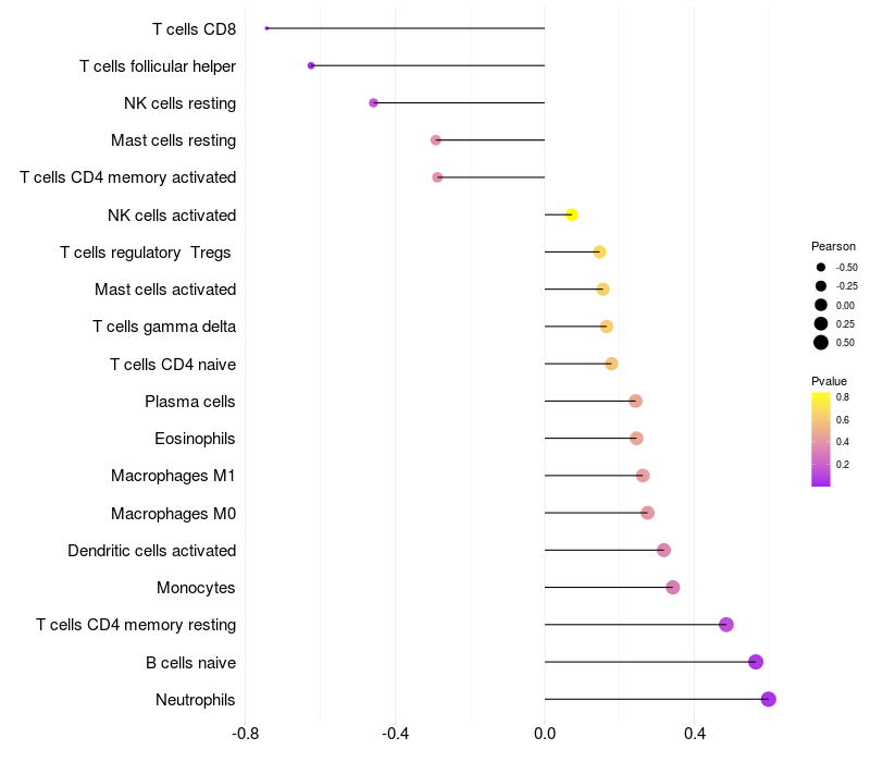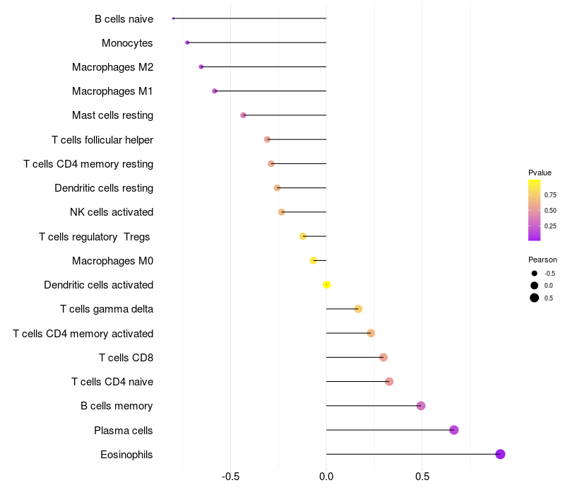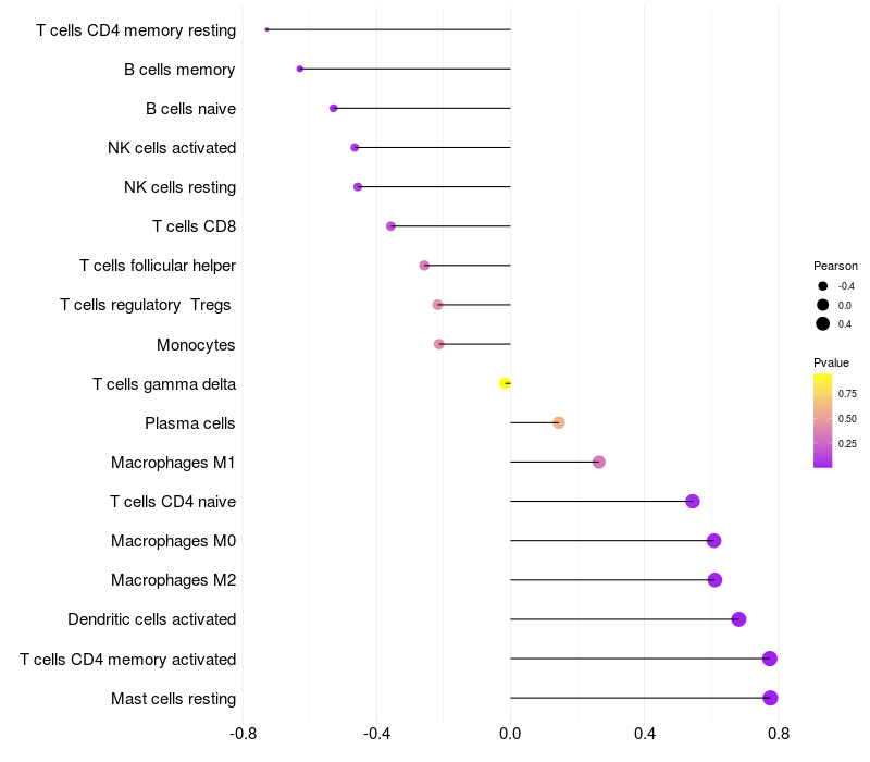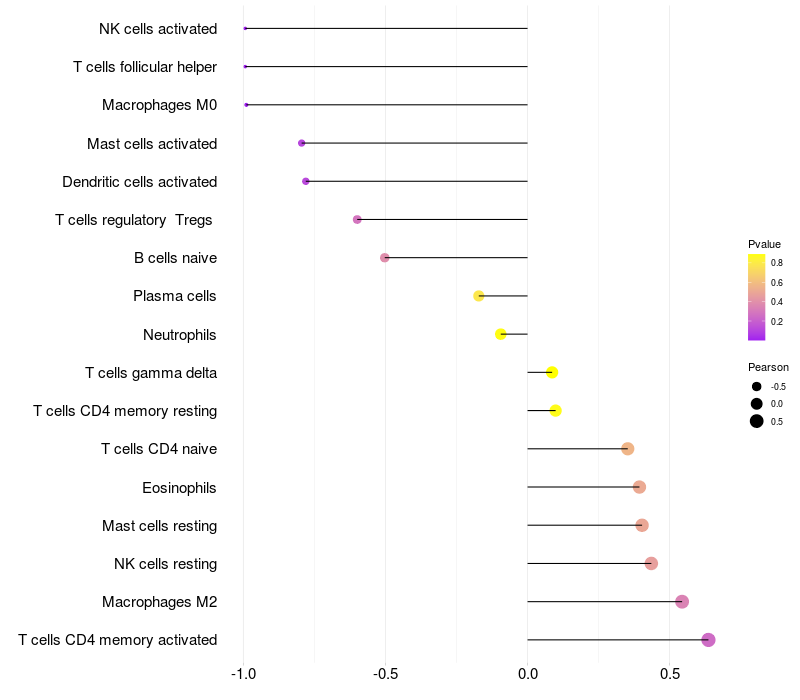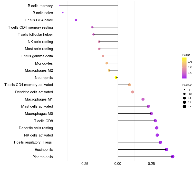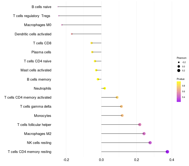 Lollipop of DKK3 expression and immune infiltrating cell level correlation result in EBV+ samples