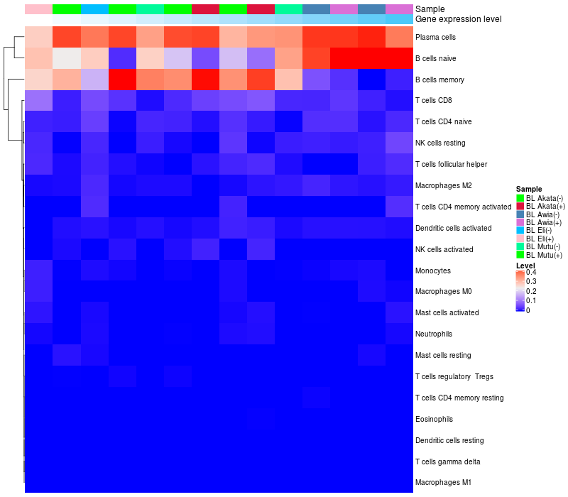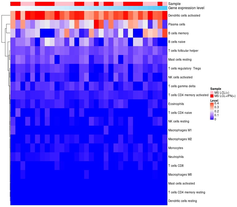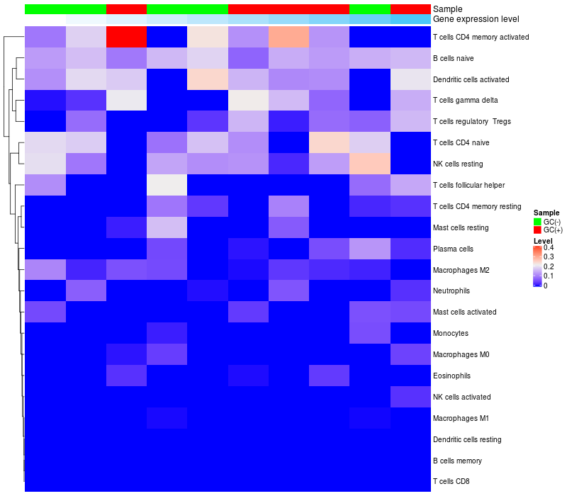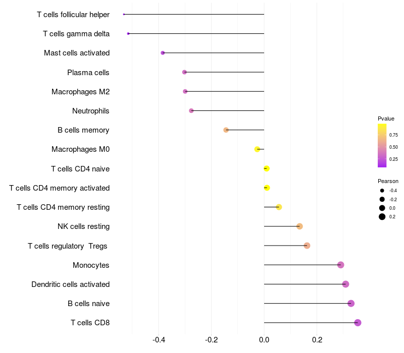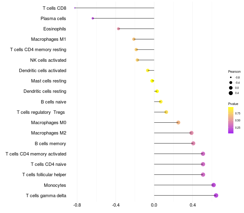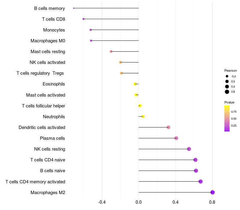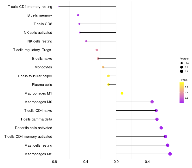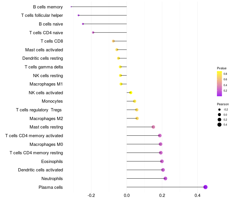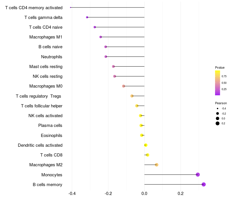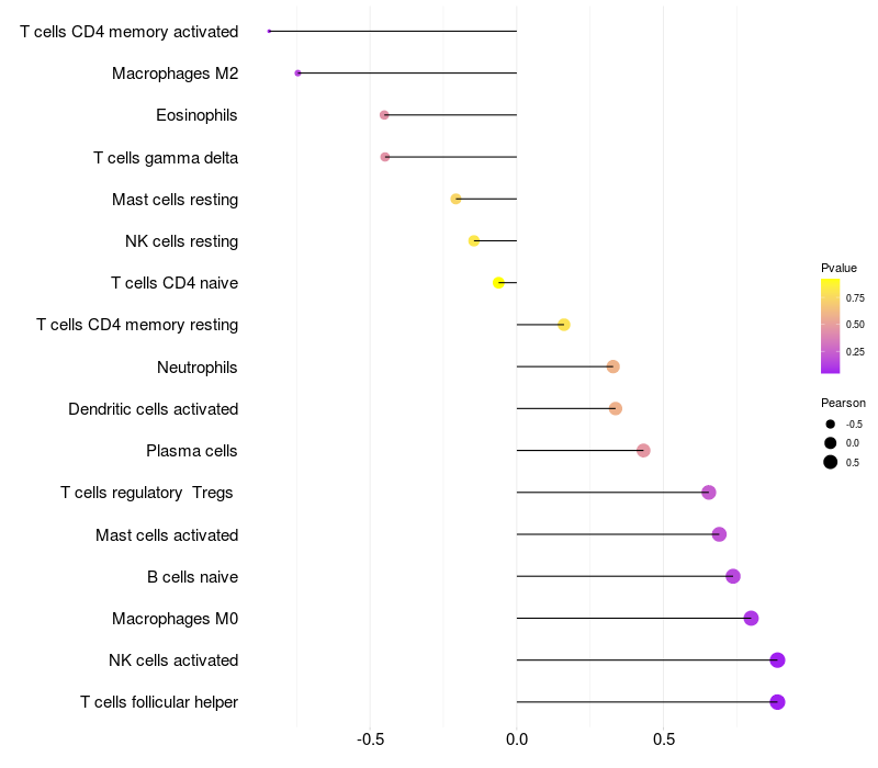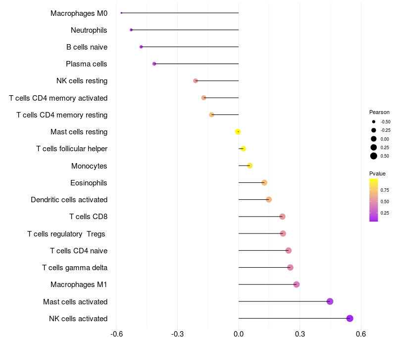 Lollipop of DLG1 expression and immune infiltrating cell level correlation result in EBV+ samples