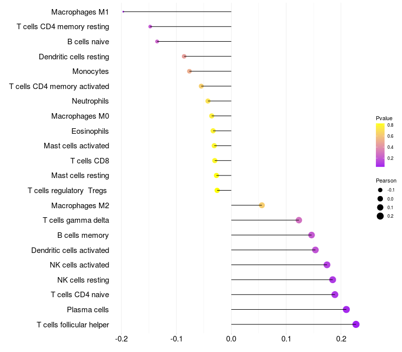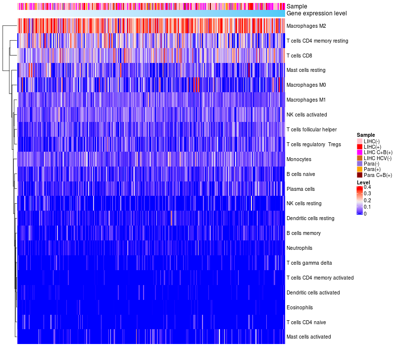 Relationship between gene expression and immune infiltrating cell level