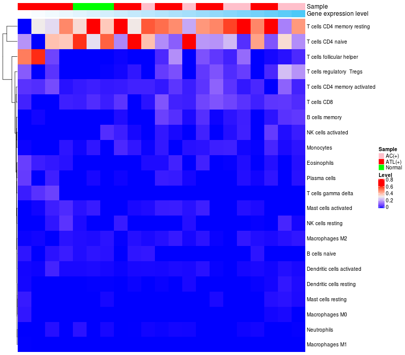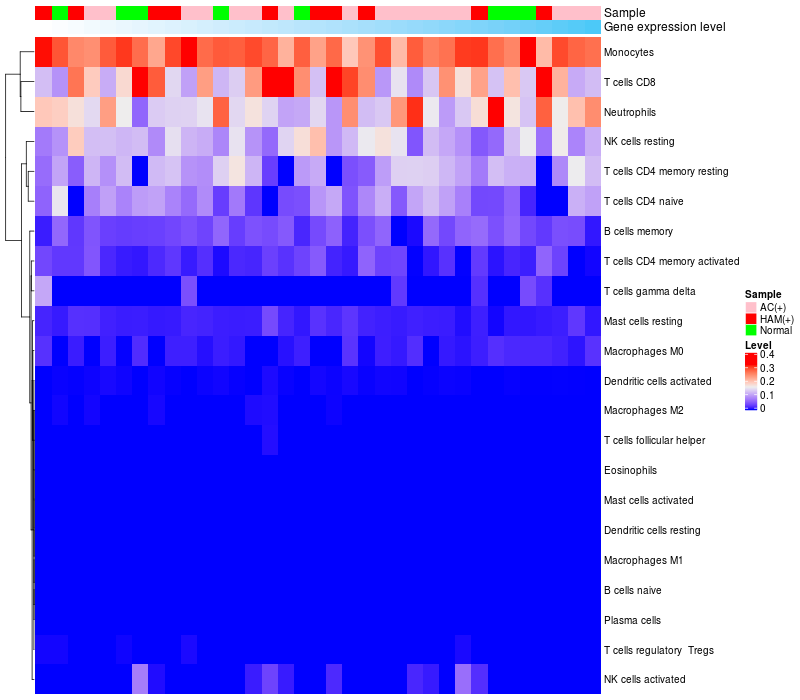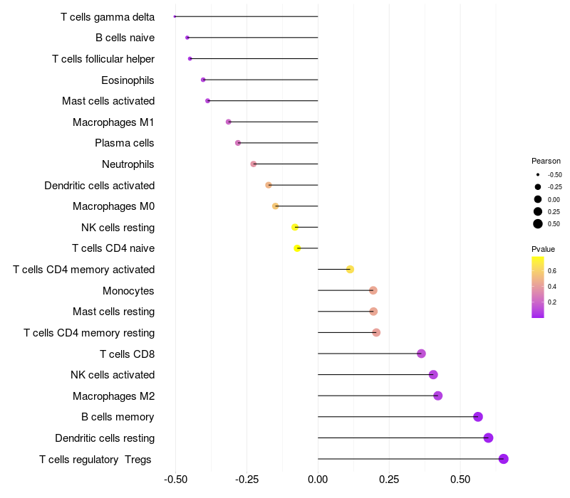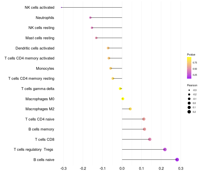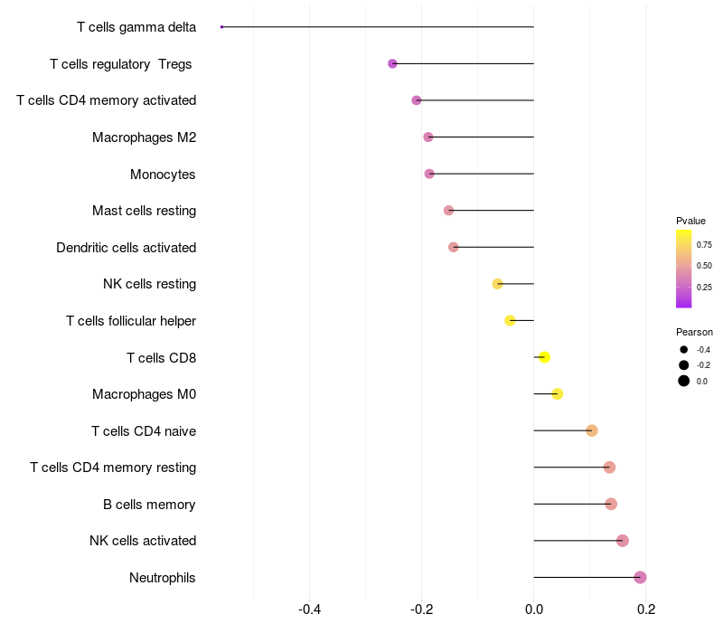 Lollipop of DLGAP4 expression and immune infiltrating cell level correlation result in HTLV1+ samples