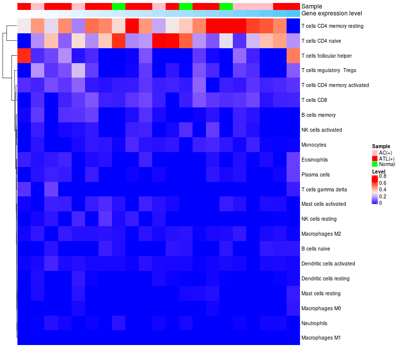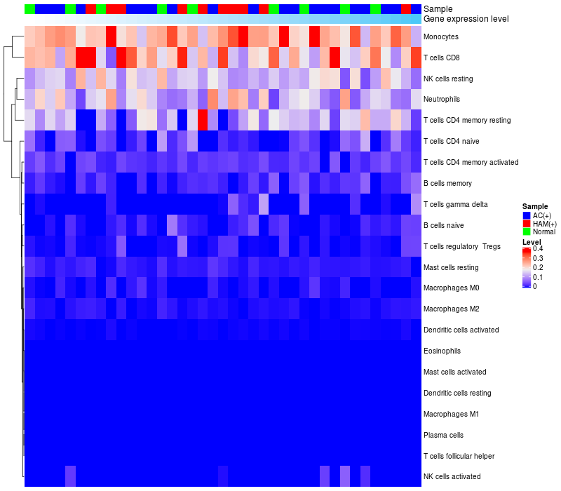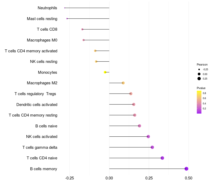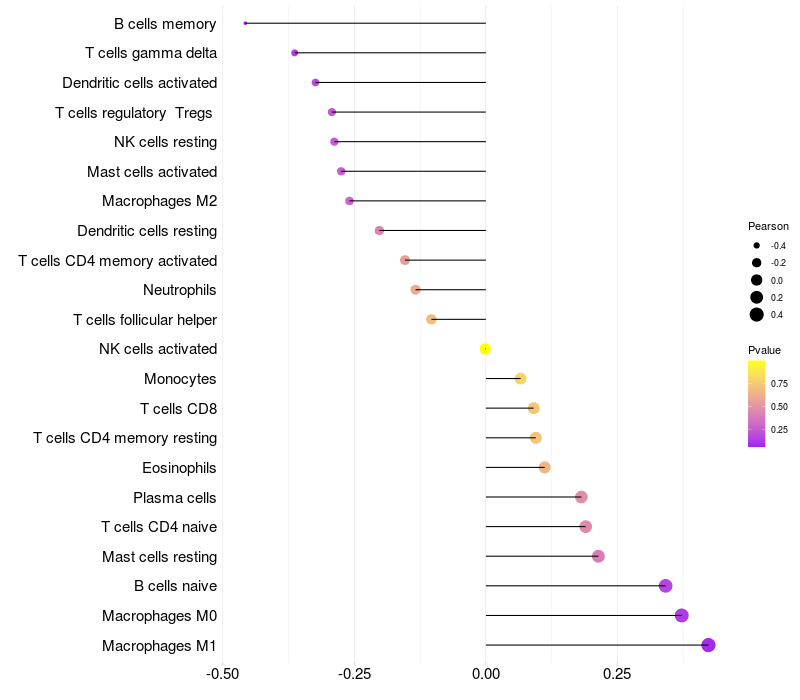 Relationship between gene expression and immune infiltrating cell level