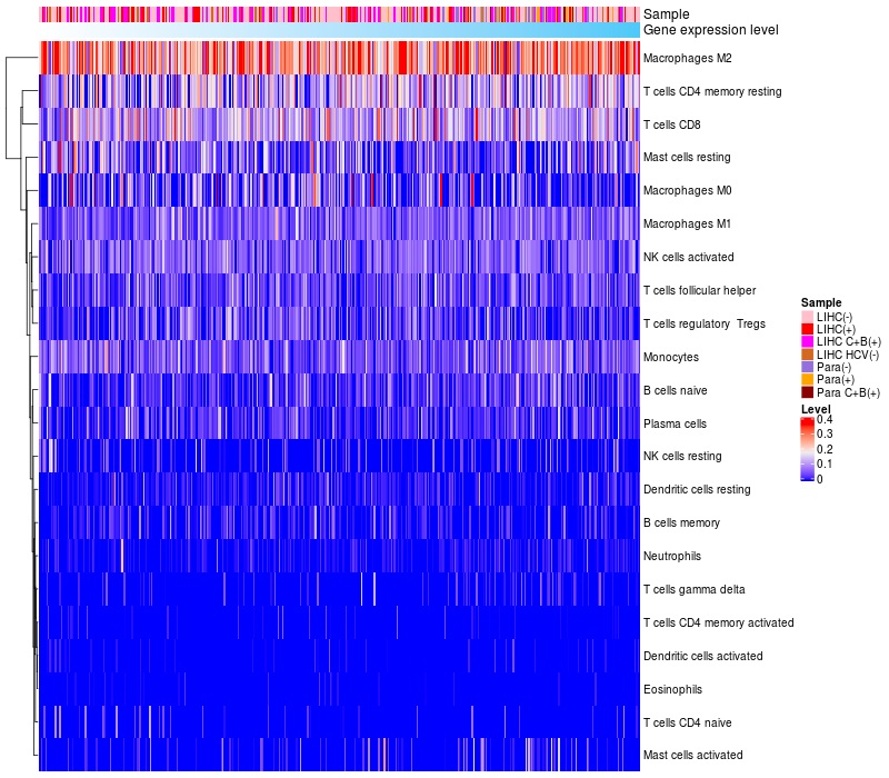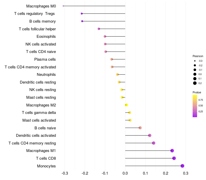 Relationship between gene expression and immune infiltrating cell level