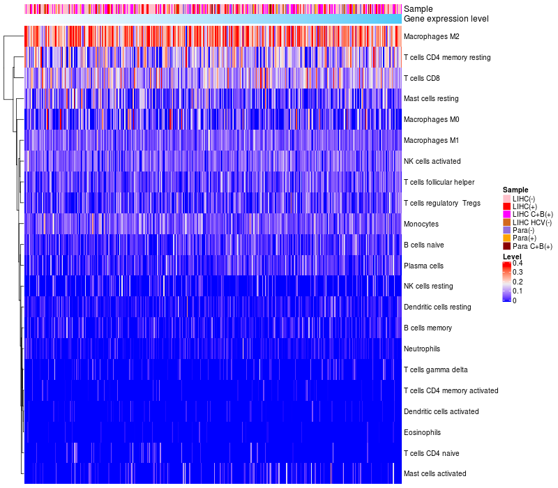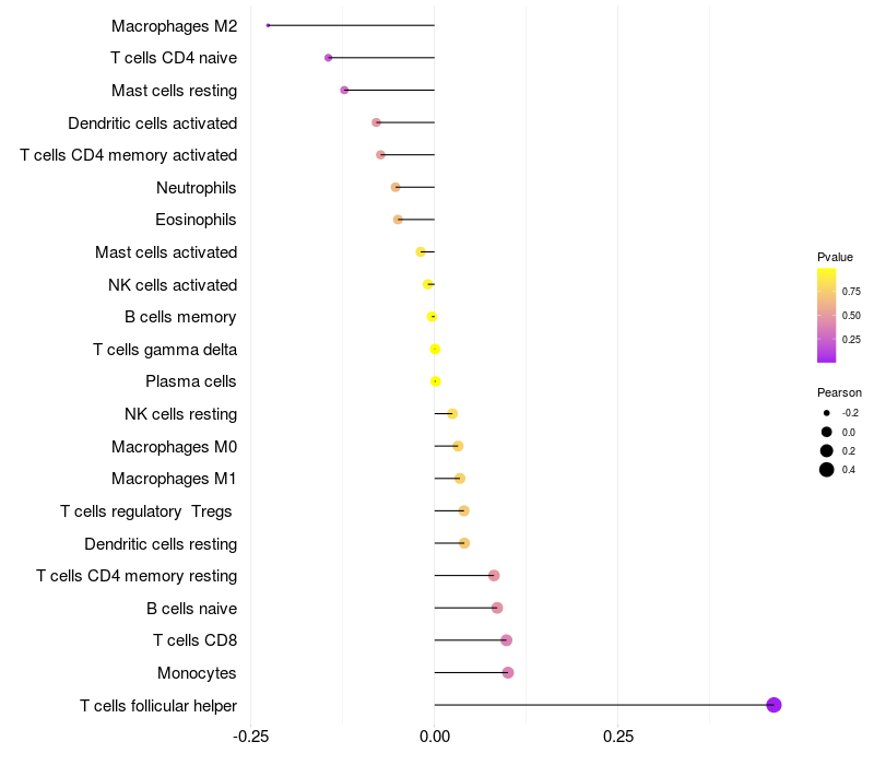 Relationship between gene expression and immune infiltrating cell level