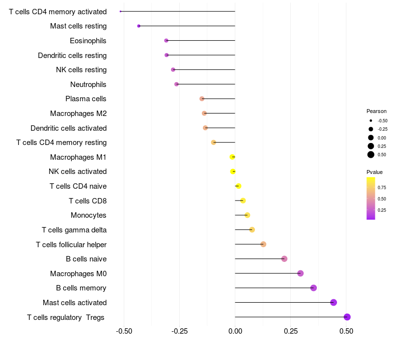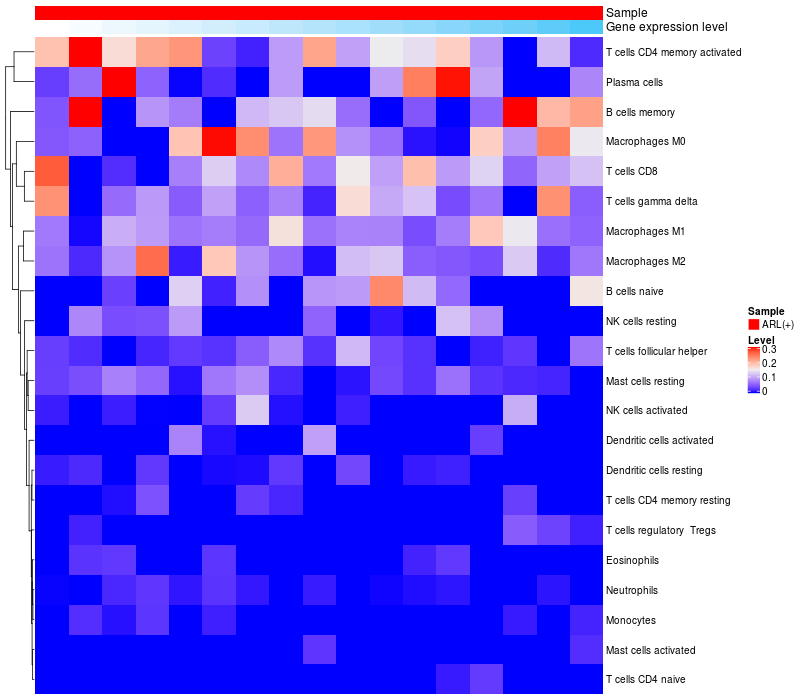 Relationship between gene expression and immune infiltrating cell level