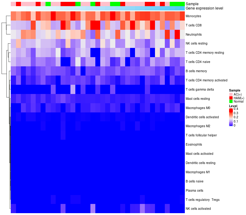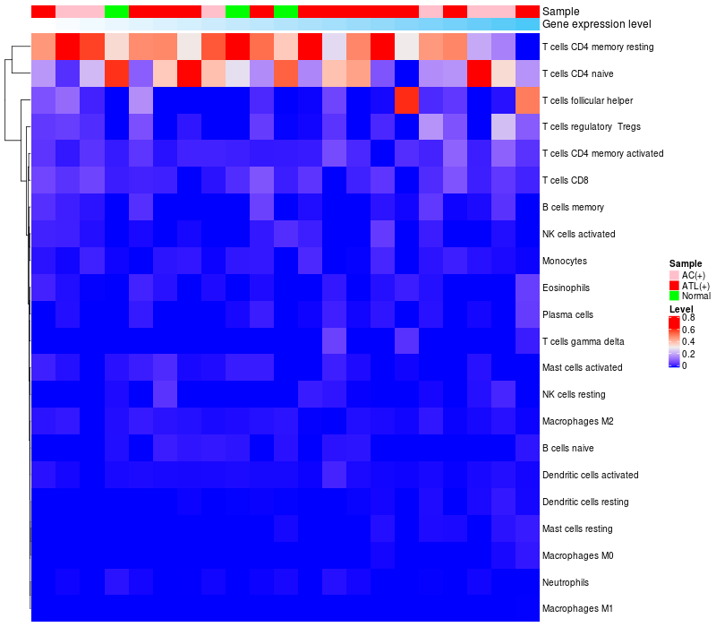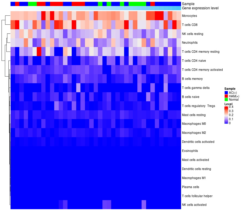 Lollipop of DOCK1 expression and immune infiltrating cell level correlation result in HTLV1+ samples
