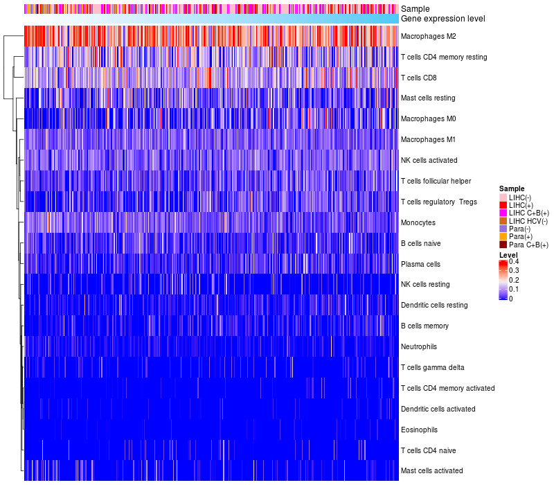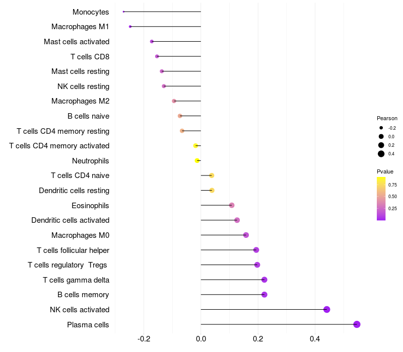 Relationship between gene expression and immune infiltrating cell level